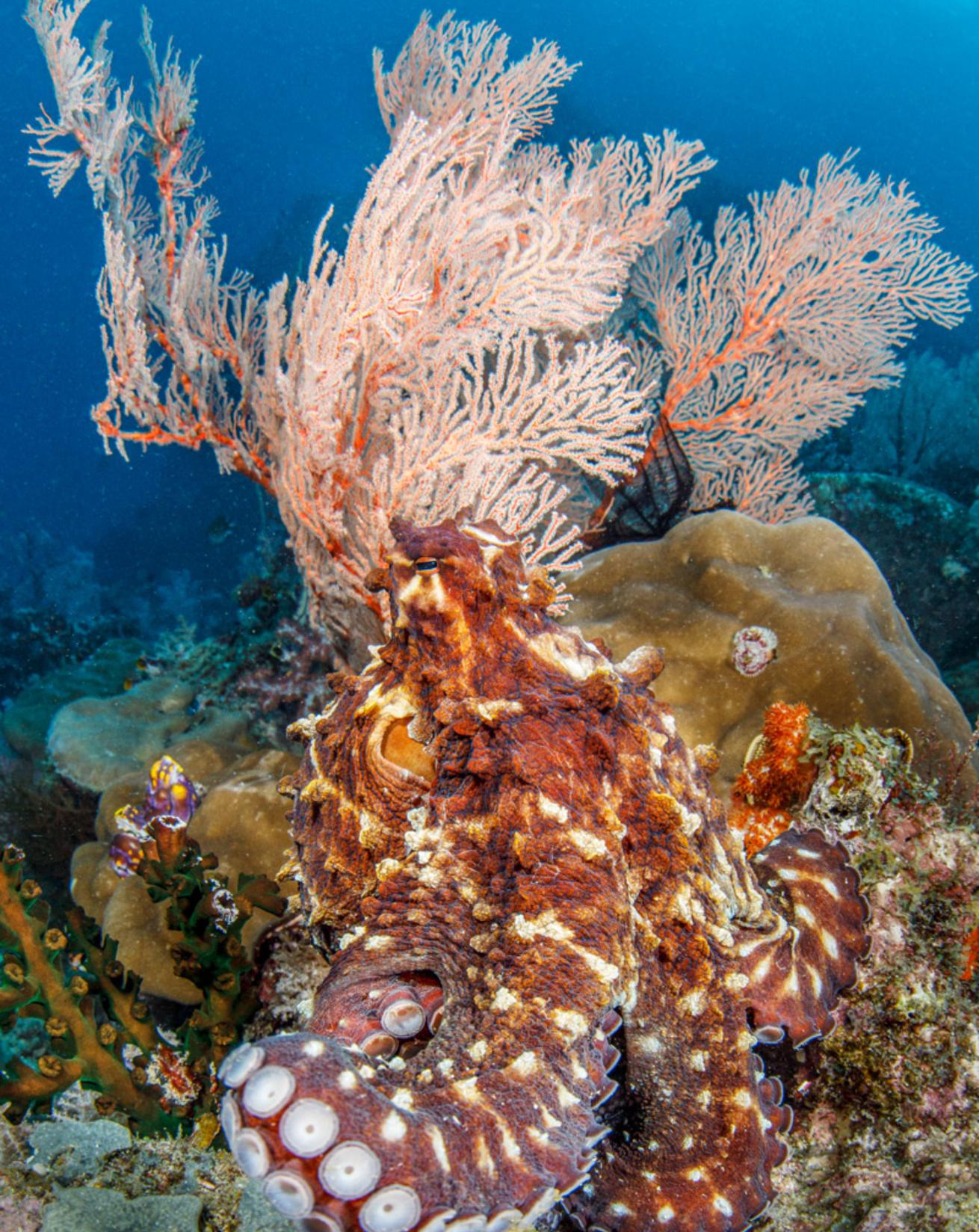 He approaches assertively and extends an arm over the top of the shells while I prepare to witness the worst. But seconds later, it dawns on me what I’m seeing: The arm is a hectocotylus, a specialized arm used for reproduction. I watch (don’t judge me) until the act is over, and then I surface, elated. I may not have seen a wonderpus with eggs this afternoon, and that might have been my last dive in Lembeh, but while tomorrow’s rumor—“a few ridiculously lucky divers got to watch coconut octopus sex”—is circulating, I’ll still be buzzing with excitement over this dive. Oh, and I’ll also be on my way to Raja Ampat to dive some of the planet’s most pristine reefs.