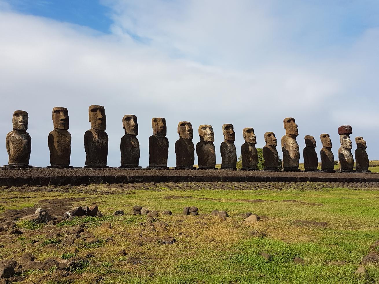 Carrie MillerAhu Tongariki is Easter Island's largest ceremonial structure: 15 standing moai set near the ocean.