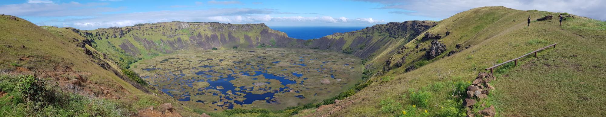 Rano Kau: An impressive 3,000-foot-wide volcanic crater filled with fresh water that was once the island’s primary water supply, as well as an ancient manavai (circular rock walls to protect crops). A viewing platform provides information and uninterrupted views of this special microclimate.