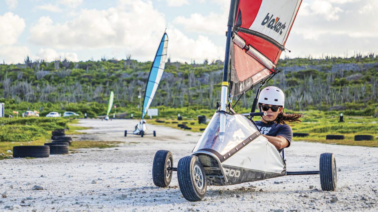 Bonaire Landsailing Adventures If you put a sail on a motorcycle it might feel something like the Gs you’ll pull in a “blokart,” which surprisingly is entirely wind-driven and suitable for all ages and abilities. It’s especially fun for groups. (landsailingadventures.com)