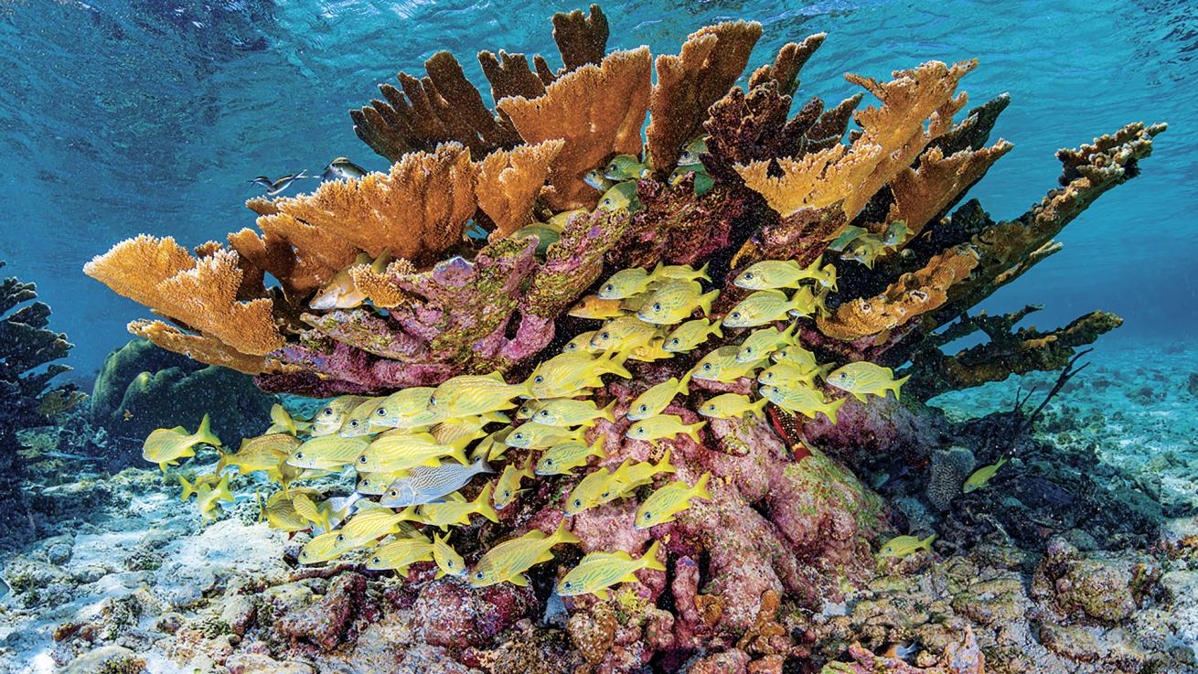 Lorenzo MittigaFrench grunts flit around a stand of elkhorn coral.