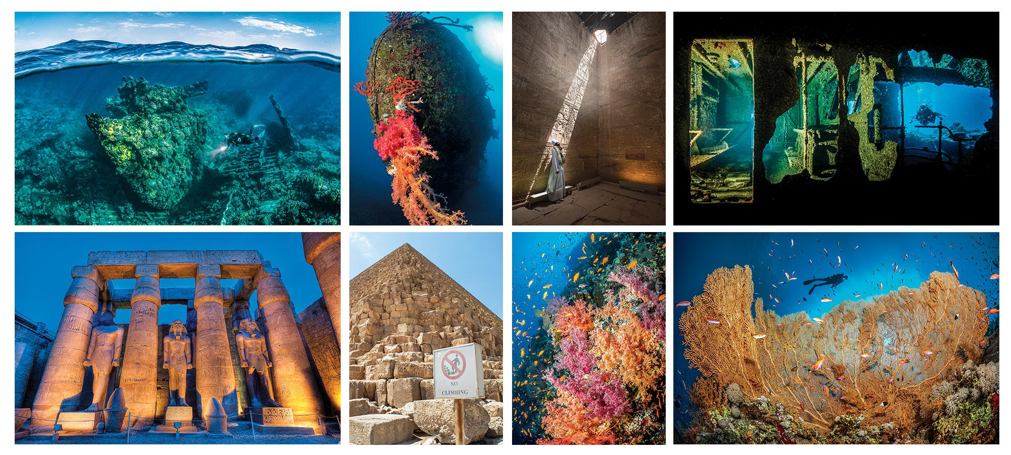 As impressive as the Nile monuments we visit is the heroic effort to conserve them. That effort, and its success, reminds me of our last Red Sea dive. Dolphin House is only an hour’s ride from Hurghada, and popular with dayboats and snorkelers—it’s a party scene. But I’m astonished once again as we descend to picture-perfect coral bommies scattered across crystalline sands, each one bursting with flittering, finning, vibrating life, all thriving under the bright Egyptian sun.