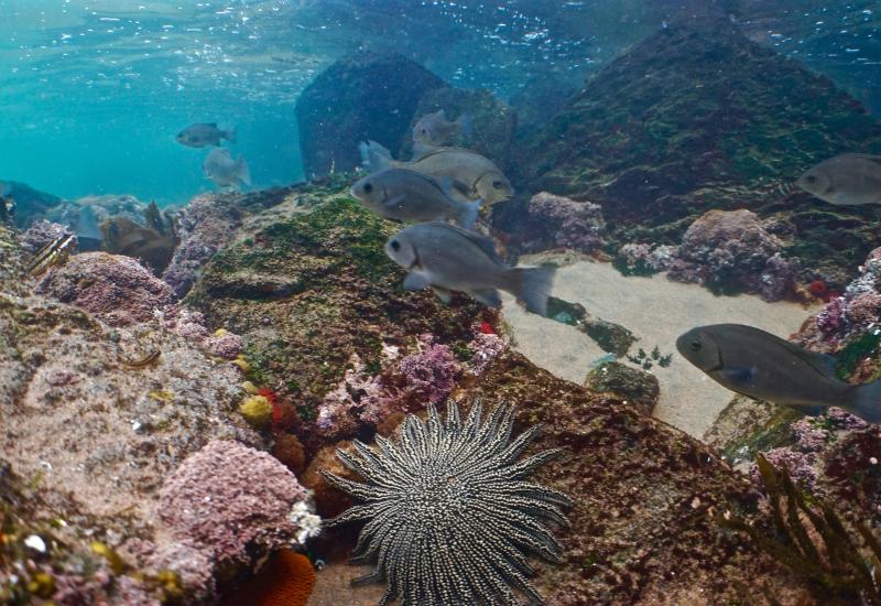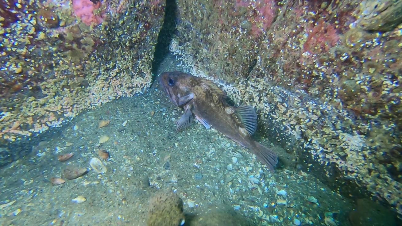 Gorky came across a sea urchin, and threw it at some rocks a few times until it cracked open. He dug out the orange flesh and handed it to me. Ready to list “eating underwater” as one of my talents, I took a breath in, removed my regulator with one hand, pushed the sea urchin into my mouth with the other, and swallowed it, along with a hefty dose of ocean water.