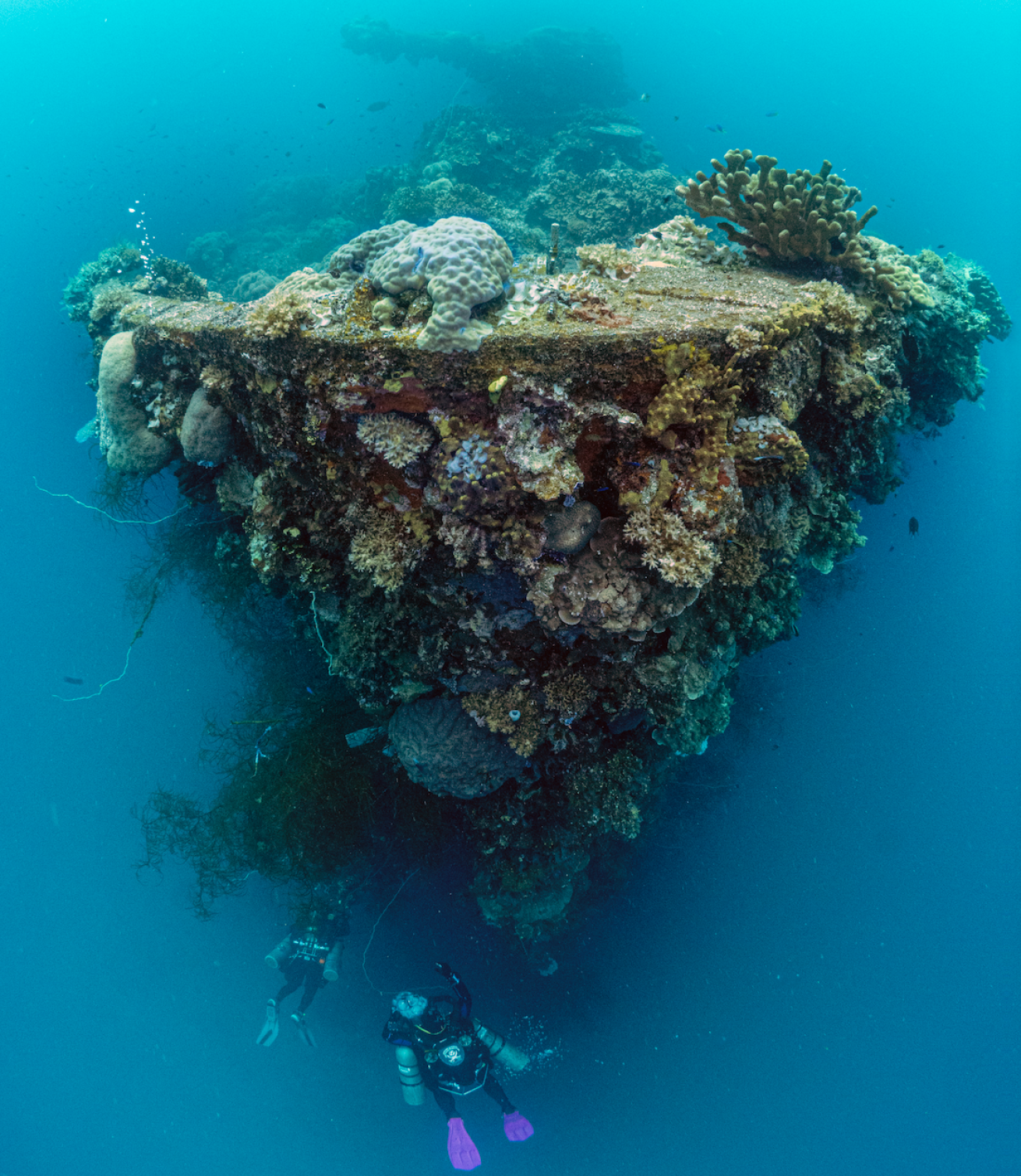 Courtesy Jill HeinerthHeinerth dives the Fujikawa Maru, a World War II–era ship sunk in Chuuk Lagoon in 1944.