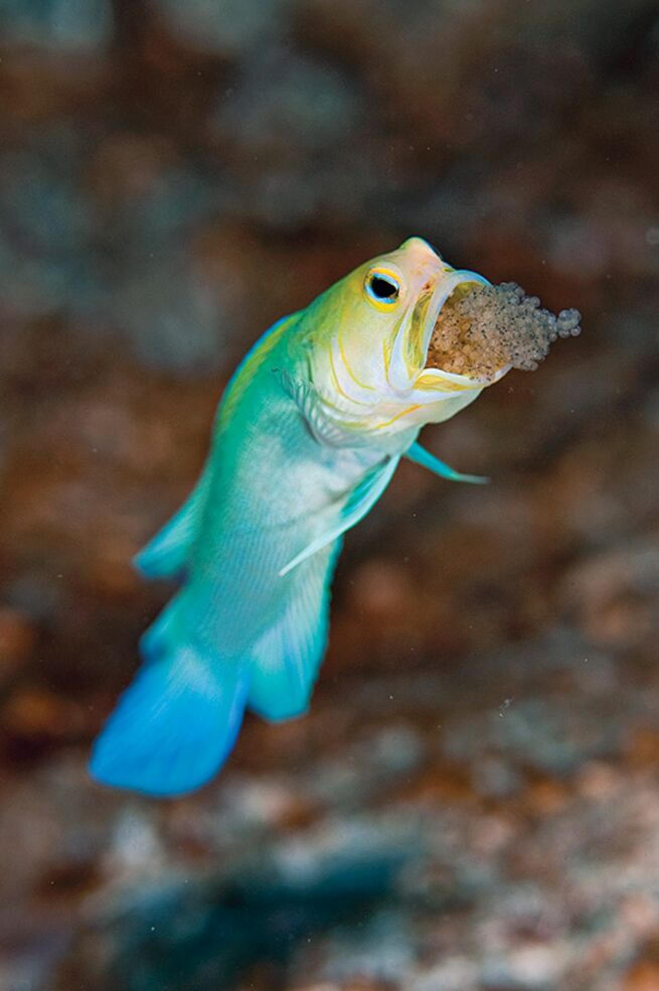 - To mix and aerate their eggs, males occasionally partially spit out and quickly suck clutches back in, a behavior known as churning.