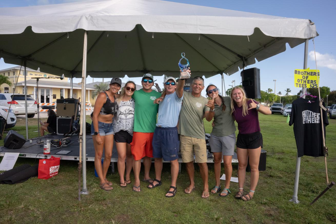The winners are announced for the first categories:defending champs of the private boat division Wasting Time held reign and Key Dives won the most unique piece of trash prize (a kitchen sink).