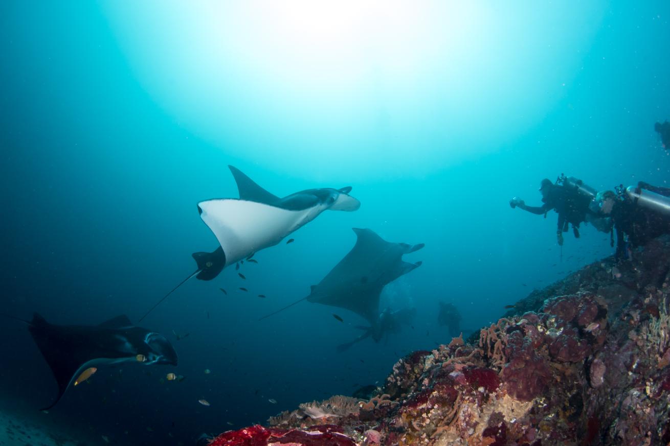 Brandi MuellerDivers learn how to properly photograph mantas in Indonesia.