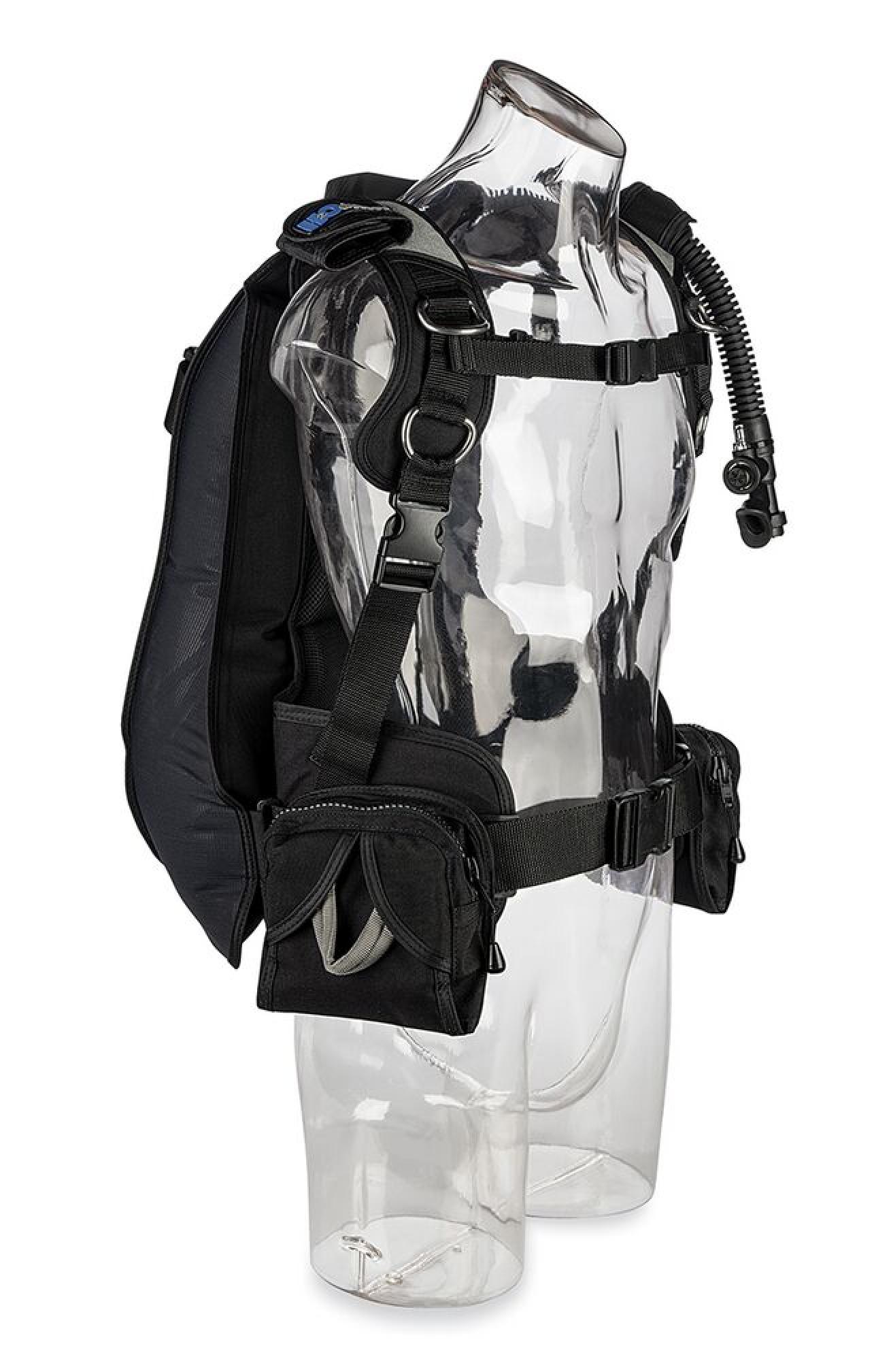 Weighing just over 5 pounds, this comfortable, lightweight back-inflation BC offers divers up to 42 pounds of buoyant life in size medium. This travel-friendly BC features a soft pack plate for easy packing. Two zippered cargo pockets and four aluminum D-rings offer plenty of options for stowage and clipping accessories, octos and gauges. The air cell is compressed by bungees to help control volume for a stable orientation and to ensure quick deflation. Three pull dumps help with maintaining buoyancy. Vertically mounted weight pockets make it easy to ditch weights, and feature simple web loops to help load lead against the pull of gravity.