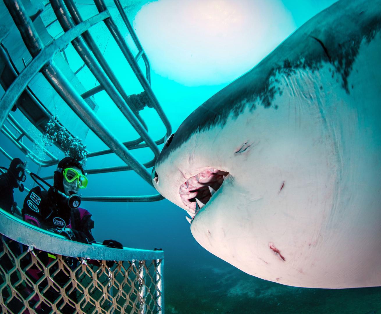 “If you do things properly, [cage diving] is a very good tool for conservation—but also to create awareness and change the perception of these animals,” he says. “When they first arrive, people will ask me, ‘What should we do if a shark attacks the cage? Should I wear a white wetsuit because the black wetsuit makes me look like a seal?’ I see in their eyes they’re excited, but also very scared. But when they come out of the water after just 60 minutes, people are super happy. Some of them are crying. They tell me, ‘This was the best day of my life.’ The image of the white shark has changed completely for thousands of people thanks to cage diving.”