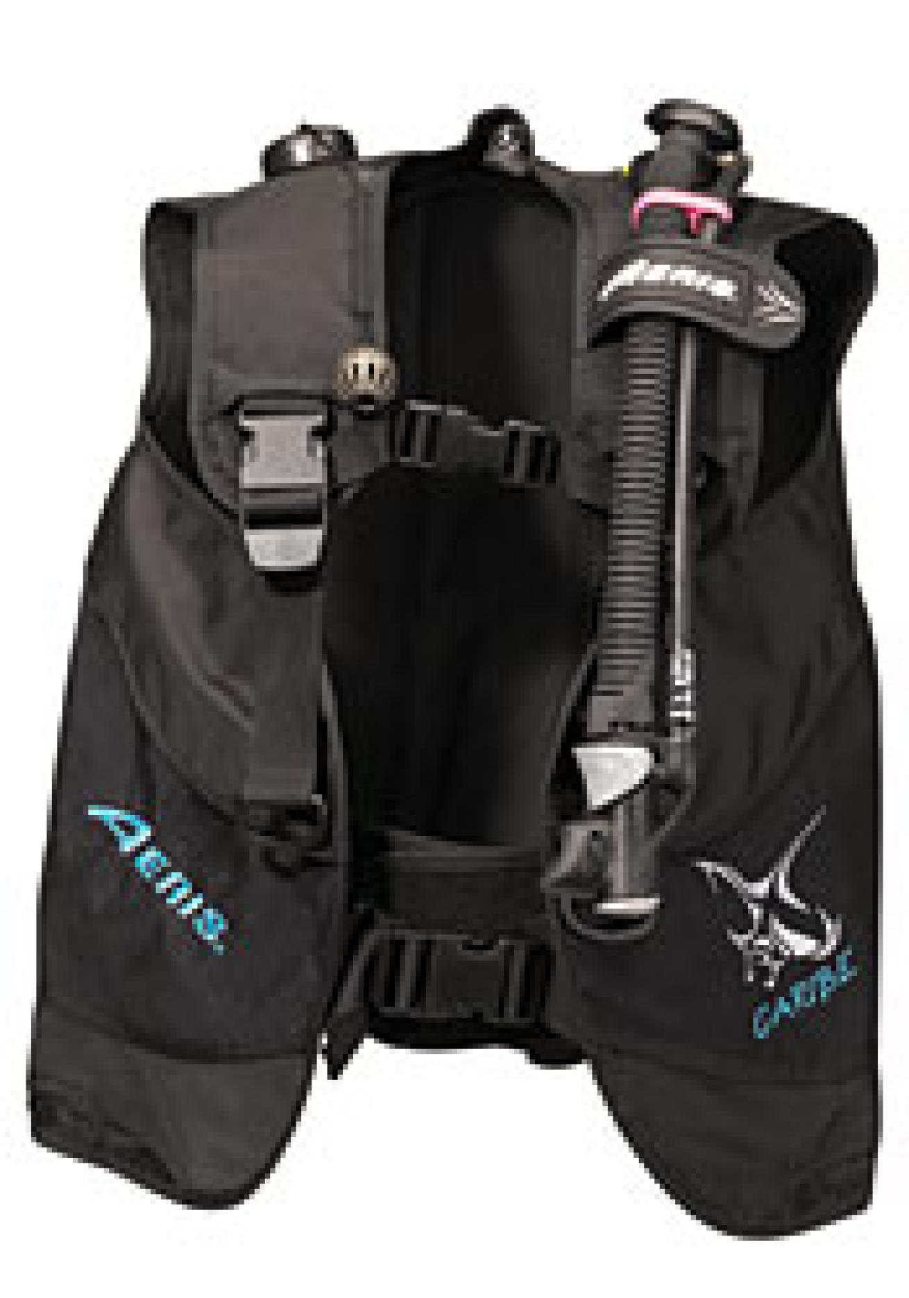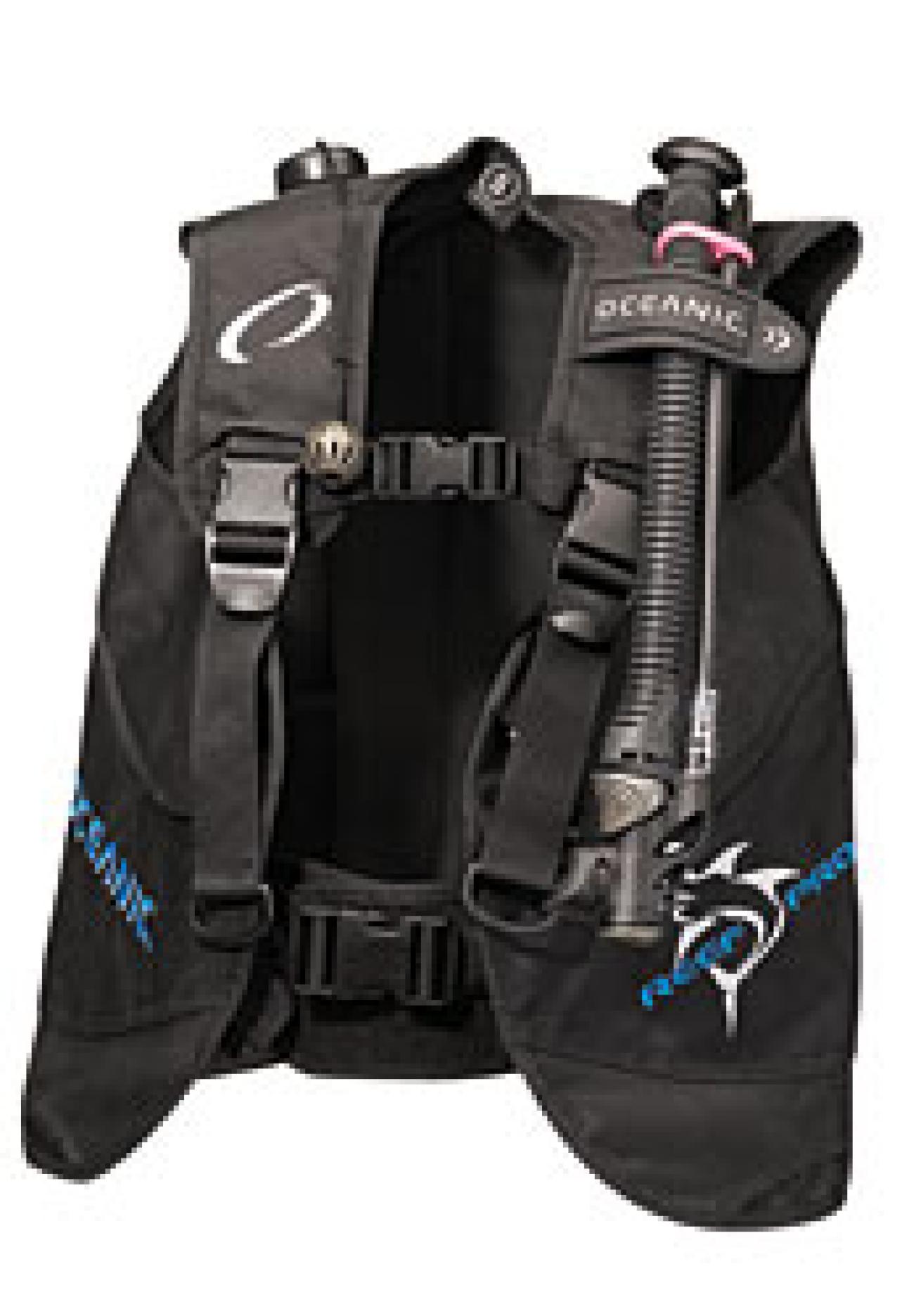 Virtual twins, the Aeris Caribe and Oceanic Reef Pro are basic "no-frills" jacket-style BCs that provide good in-water performance for divers on a budget. Test divers told us both BCs were stable in the water and that ascent control was a breeze, thanks to ergonomic inflater controls and large, easy-to-find dump valve toggles. Assembly with both models is quick and simple with the integrated carry handle and an adjustable tank-positioning strap. The Caribe and the Reef Pro have the lowest suggested retail price among the BCs in this review ($309.95), so don't expect features and amenities other than two roomy cargo pockets secured by Velcro flaps. There's a place for a rear pull dump, but the valve itself is a $12.95 upgrade.