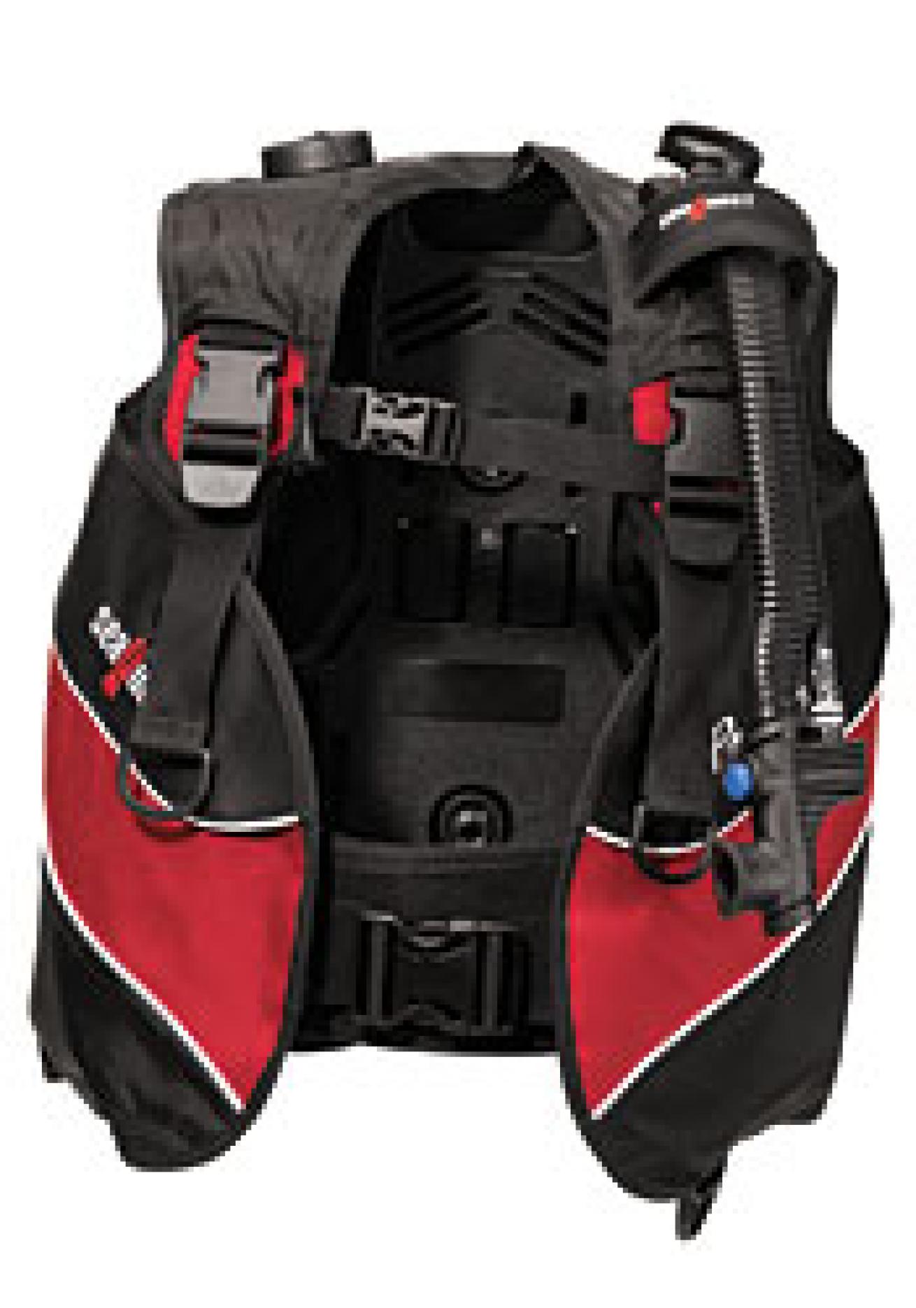 The Zeagle Scout has been tweaked since we first reviewed it in March of 2002, and is now classified as a warm-water or travel BC. We took the opportunity of our recent BC test to dive the updated Scout in both the cold waters of California and in a more suitable climate-comfortable 80-degree waters. True to its classification, the BC performed best in the warm-water setting (where less ballast is required.) The reason: The weight pouches of the integrated-weight system are positioned back alongside the tank. Each holds up to 10 pounds of lead, but we found that when fully loaded, the BC had a tendency to rotate the diver to one side or the other. When we dived it in 80-degree temps and with only four pounds of lead in each pocket, this issue disappeared completely, and the streamlined BC moved easily through the water. Thanks to twin tank bands, there is no wobble. And thanks to a soft-pack design, the Scout is very light and packs well. Price: $315. Contact: www.zeagle.com.