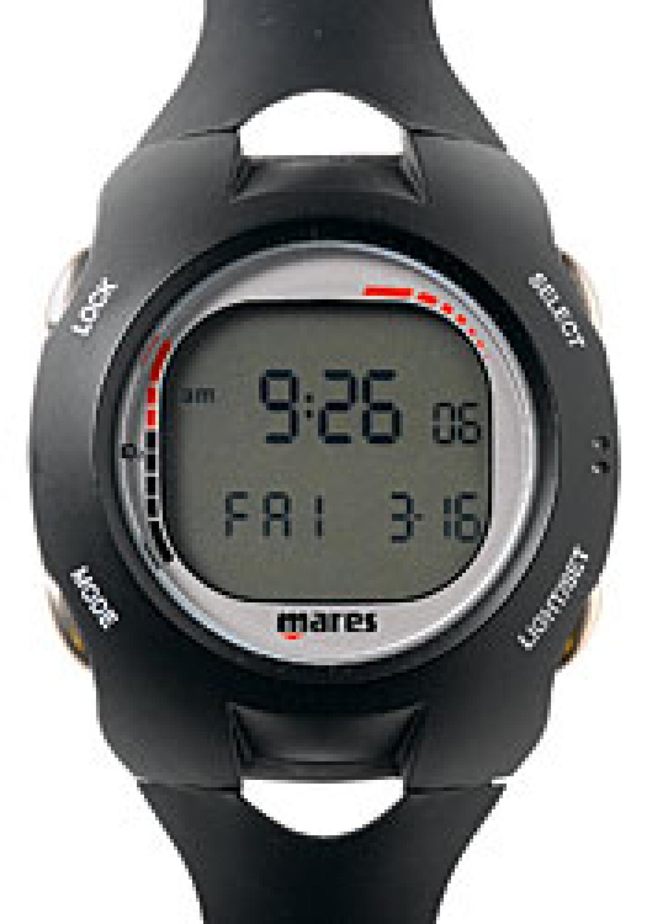 Topside, the new Nemo Sport computer from Mares is a rugged digital timepiece set in a thermoplastic housing. Take it below water and it's a full-function recreational dive computer that can be set for air or nitrox mixes up to 99 percent. Test divers found the display very easy to read with only the most important info displayed (depth, no-decompression limits, bottom time), and a bright backlight that helps in low-light conditions. Our divers also like the placement and function of the ascent rate and nitrogen-loading bar graphs.