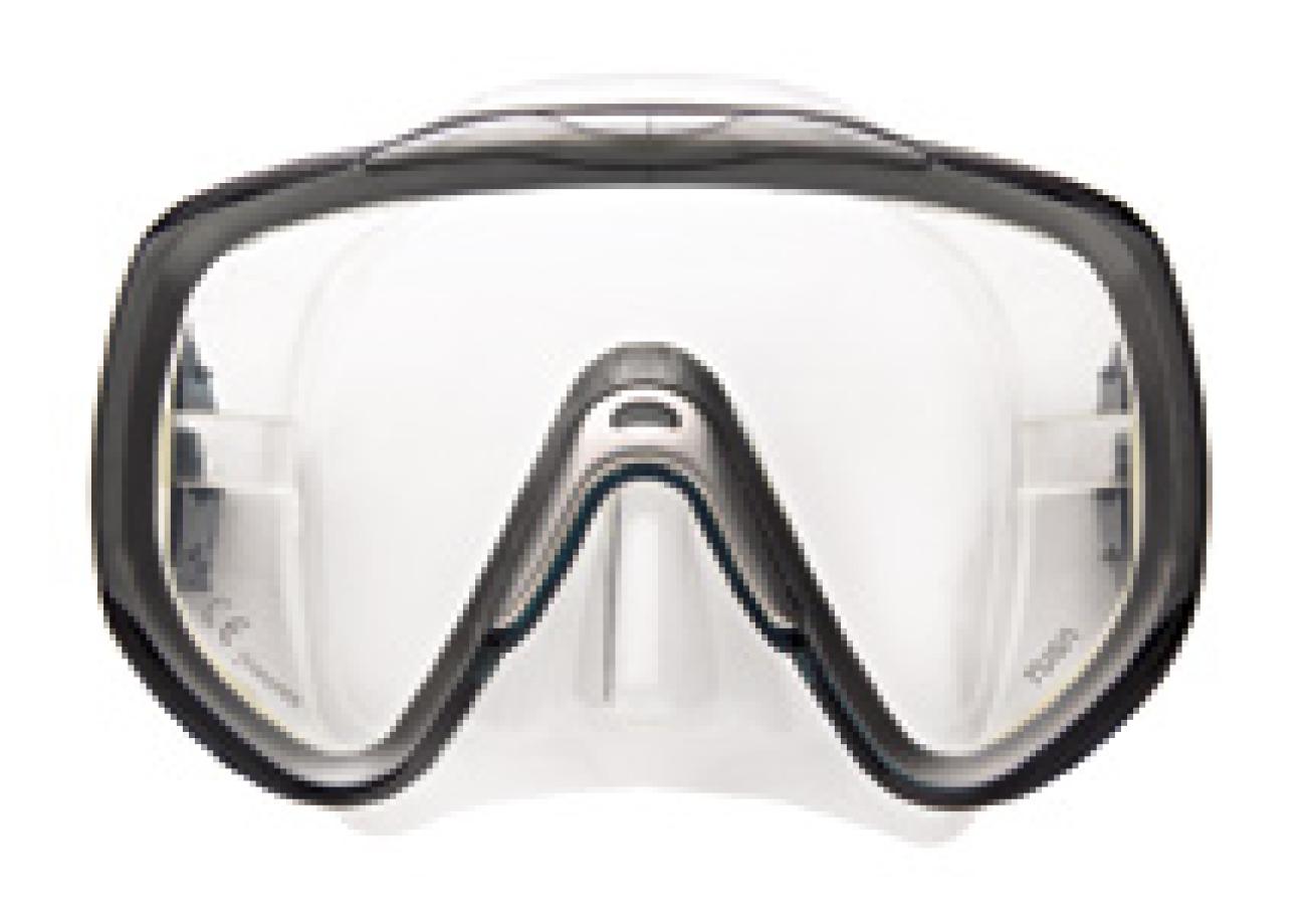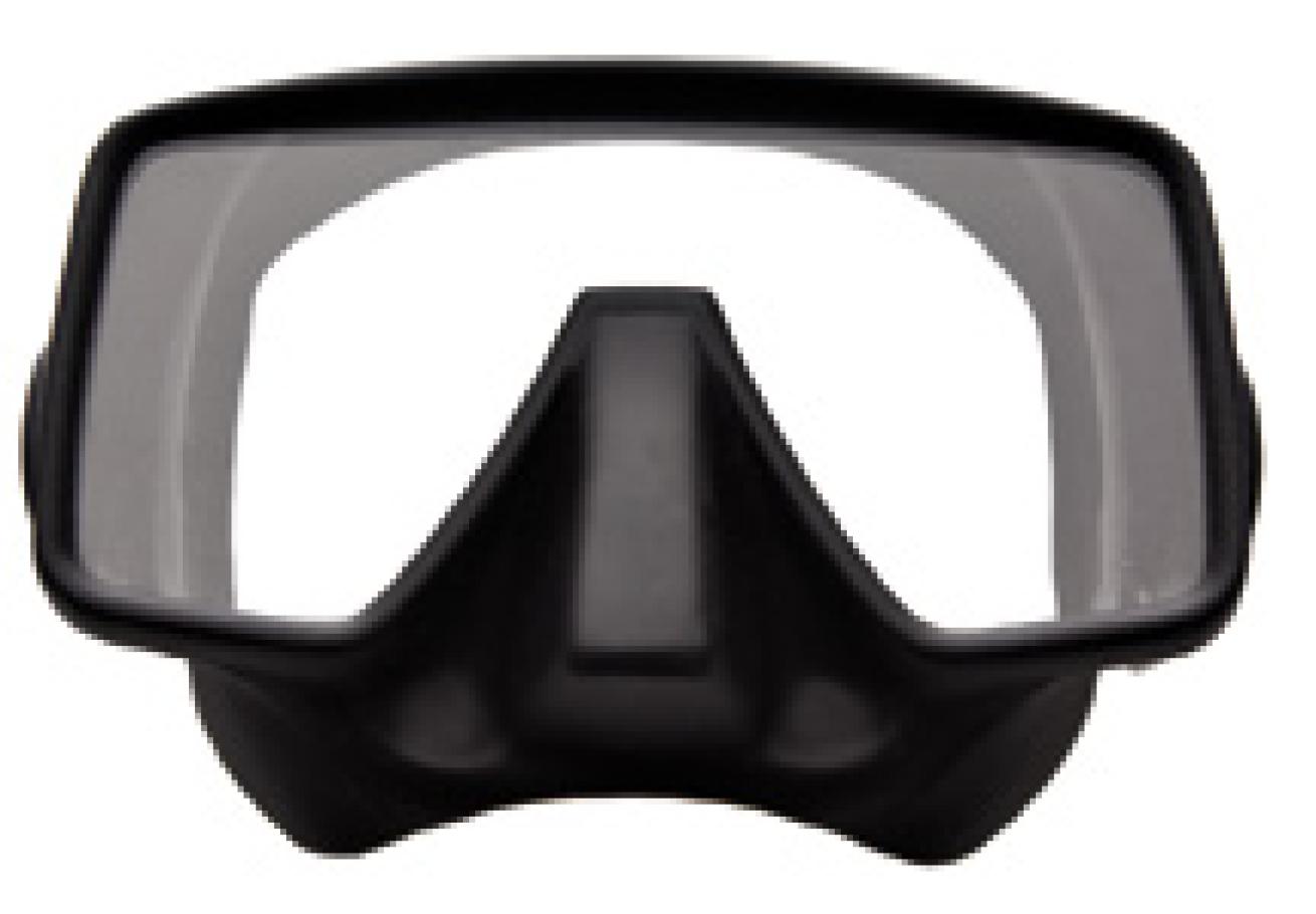 It may look tiny, but the view it offers is huge. This brand-new mask from Aqua Lung scored a perfect "10" both for low volume and wide horizontal vision through the front two windows. Vision is excellent in the up/down direction, too, partly because the lens shape is pointed at the bottom to improve downward vision. Though there are no side windows per se, large cutouts in the "open-design" frame allow you to see a little through the clear skirt. The Mythos is one of the lowest-volume masks we've ever tested. The Mythos earned our top overall score (29).