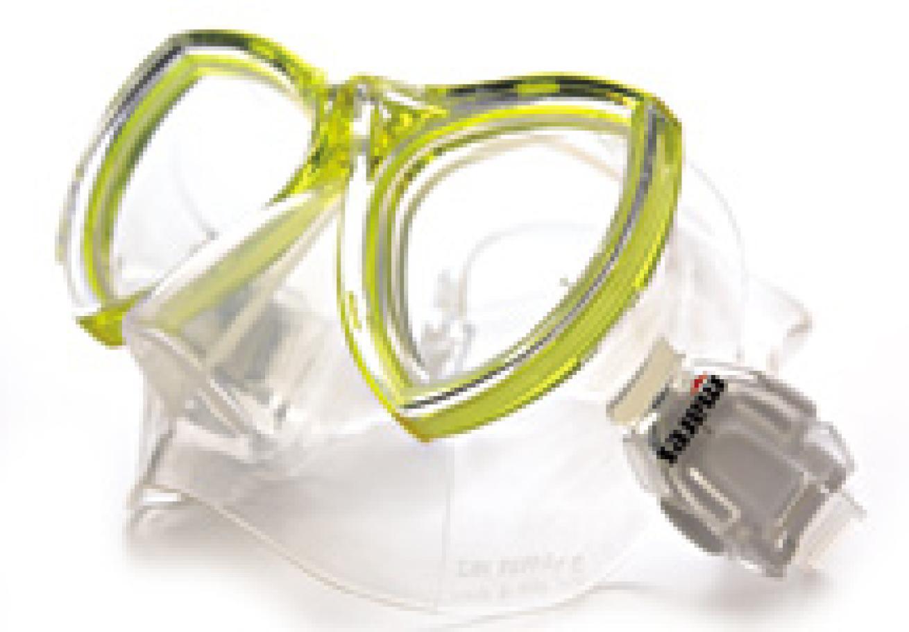 Too good to be true? Here's the catch: In order to use this mask, most divers will have to wear special disposable contact lenses to make themselves near-sighted (if you already are, you might not need them). Under water, the double domes shape water into twin negative diopter lenses and correct the vision. Presto--you can see!