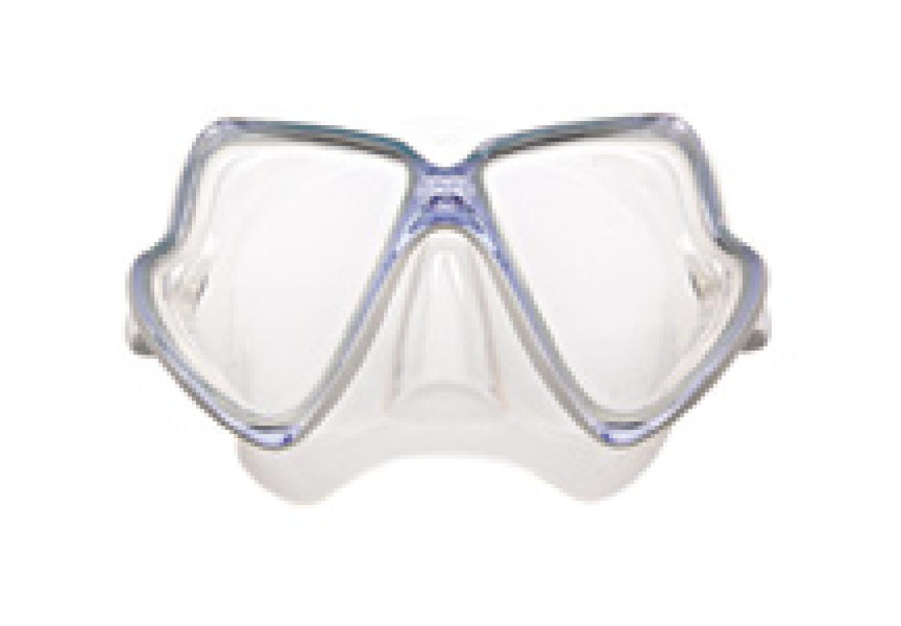 Peripheral vision is very good horizontally and good vertically despite the mask's large volume. There's plenty of glass over the nose pocket for less obstruction. Comes with Ocean Master's unique "Q Strap," which adjusts behind your head, not at your temples. Purge and non-purge versions are available.