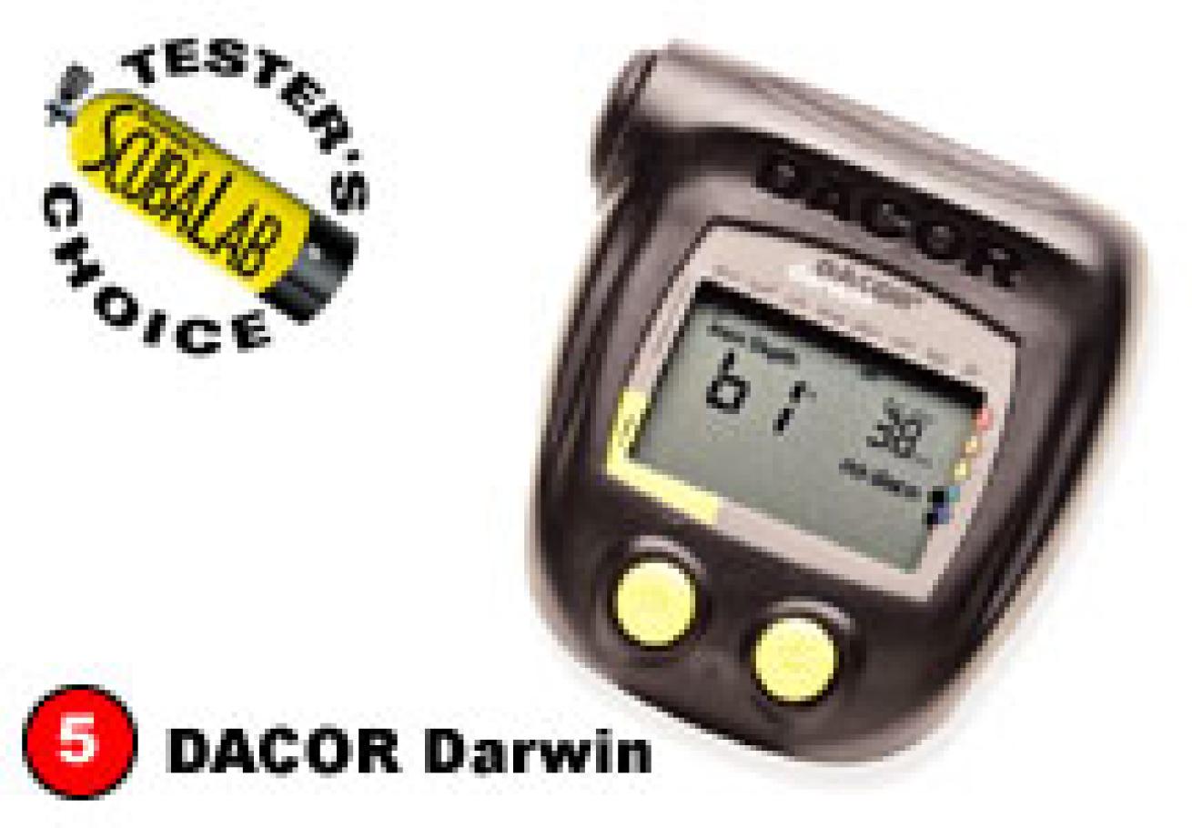 | In a field of user-friendly dive computers, the Dacor Darwin is among the friendliest. Powered by a pair of AAA batteries loaded into an easy-access watertight compartment, the computer offers a backlight that can be programmed either for 15-second intervals or to stay on permanently. This reduces battery life substantially, but with AAA batteries so cheap, so easy to find and so easy to replace without losing memory, why not keep the light on all the time?