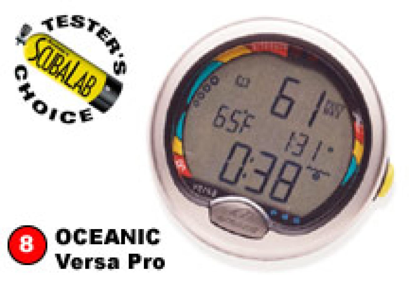 These new computers from Oceanic feature graphic displays, three-color bar graphs and large numbers in compact, low-profile packages. Where the two computers differ is in the details. The economical Versa doesn't offer a backlight or water temperature, nor is it nitrox-capable or PC-downloadable. The Versa Pro has these features plus programmable backlighting and a flashing LED warning light that is synched with disarmable audible alarms.