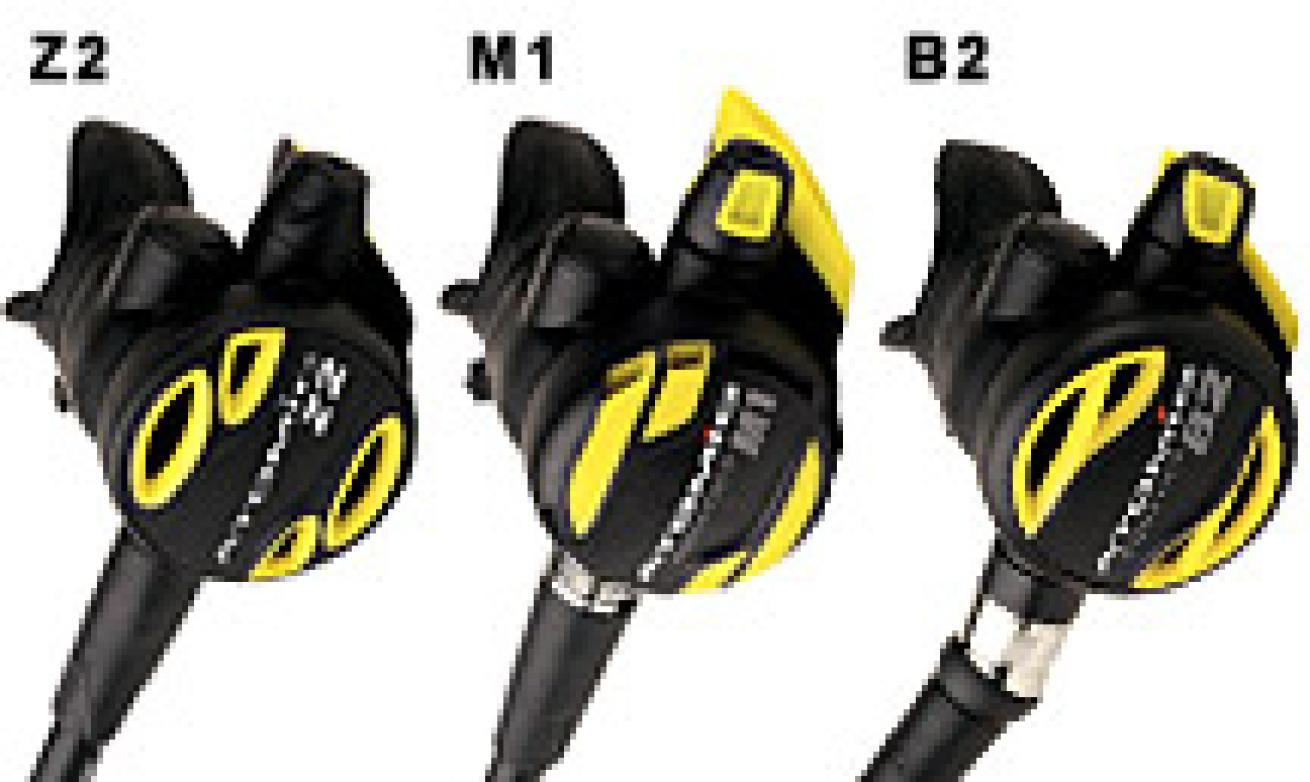The B2 features an all-titanium valve body and comes standard with Atomic's Comfort Swivel. The Z2 uses a brass valve body that is plated with palladium/zirconium to resist corrosion, and its lever, orifice and second stage spring are titanium. The M1's valve body is also palladium/zirconium-plated brass with titanium components, plus it has a thermal heat sink for cold-water diving, a slightly wider exhaust tee and a purge cover designed to reduce free-flows when swimming into currents. All three octos are fitted with Atomic's dual-silicone mouthpieces.