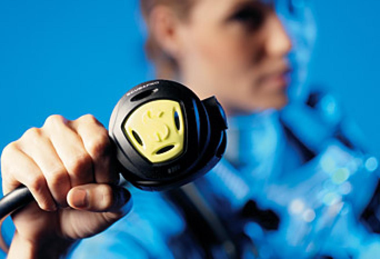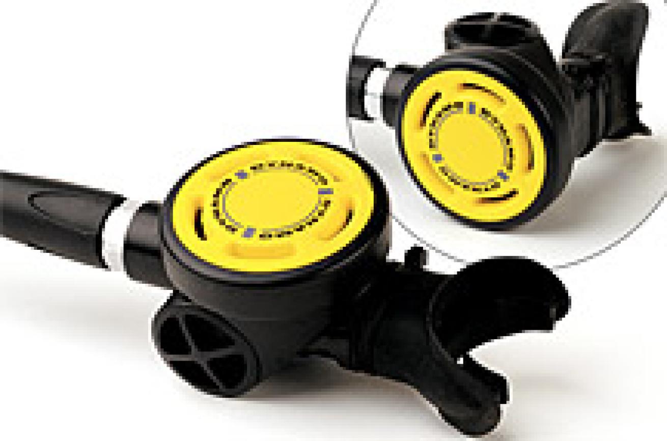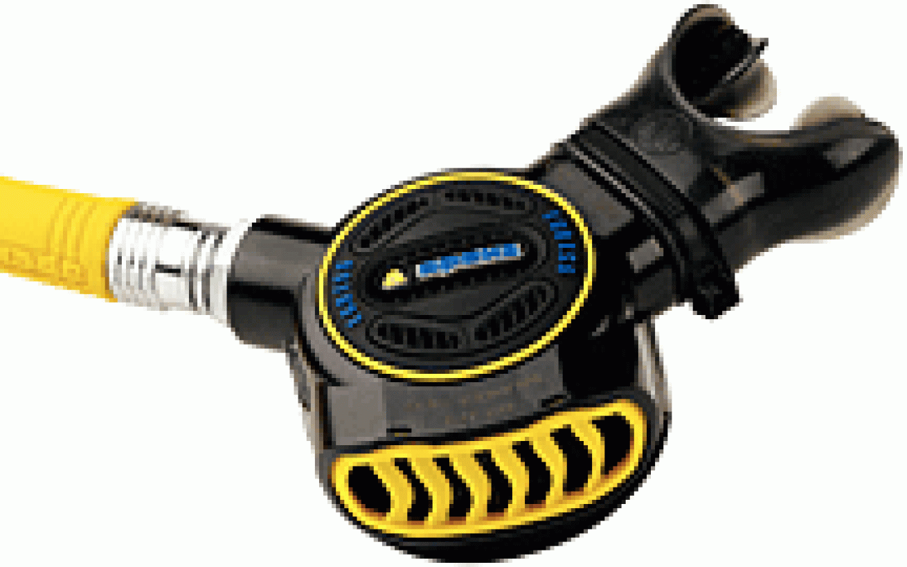 The AirWave was a favorite among test divers, earning the highest total ergo score in this category. It's a good breather in all positions and very dry. The dive/pre-dive switch is not marked (you know it's in the "plus" position when the switch lever is in-line with the mouthpiece), but the purge is easy to use and very efficient. Above-average performance combined with a rock-bottom price make the AirWave a Best Buy. XS Scuba also offers a conversion kit that will turn the AirWave into an in-line octo that ties into your BC's inflator hose.