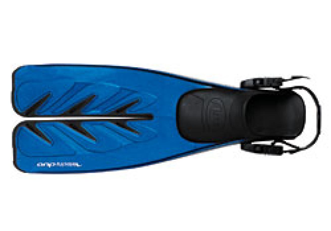 Available for years in a full-foot version, for 2005 Aqua Lung offers the Caravelle open-heel. This is a big fin with a lot of blade; test divers had a bit of difficulty with it when negotiating the sharp turns of the slalom course. On the other hand, while it takes some effort to get these fins going, the payoff is decent speed as well as thrust.