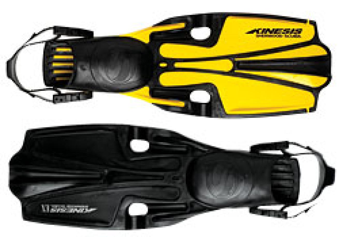 | | SHERWOOD Kinesis and Kinesis EX | These two fins, new to Sherwood, feature Optimal Pivoting Blade (OPB) technology to increase flex for maximizing thrust while not increasing effort. Relatively lightweight, the Kinesis, which comes in blue and yellow, is the standard version. The Kinesis EX, available in black only, is a stiffer fin, designed, according to Sherwood, for advanced divers seeking higher performance.