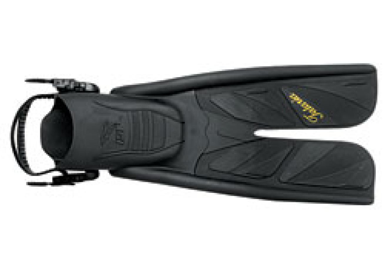 Although it proved to be one of this year's fastest open-heel fins, was powerful in the thrust tests and turned in some respectable times on both slalom and efficiency courses, this fin didn't generate much enthusiasm out on the reefs. Test divers rated the traditional paddle design as an OK all-round fin but nothing special. Made of injection-molded monoprene, the blade was considered a bit stiff, especially among female test divers. The fin has a spring strap, which was considered a plus, although divers felt it would have benefited from a grab loop. Still, it was a very easy fin to don and doff and needed no readjustment.