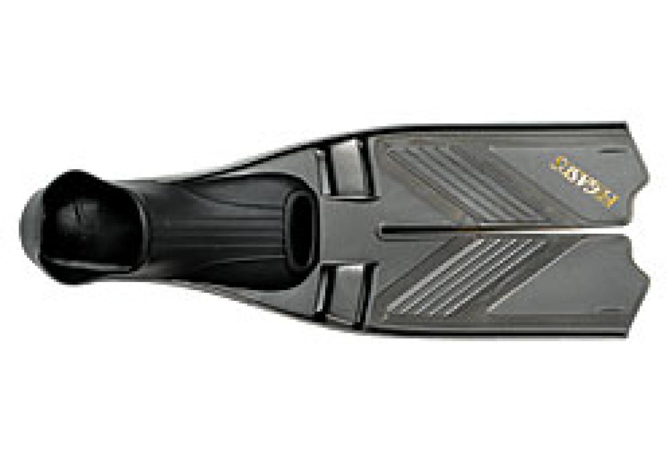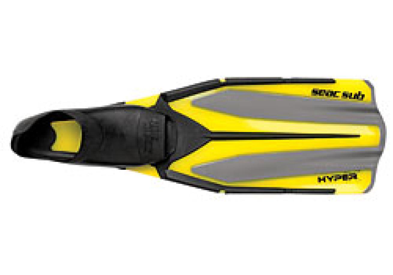 | | SEAC SUB Hyper-X | This fin has a long, stiff blade that generated good thrust as well as workable speeds and times on the other objective courses. One of the heavier full-foot fins in this test, this fin gave test divers the impression that the blade was bending at the end of the foot pocket rather than flexing throughout the blade, putting pressure on the top of the foot and the knee. In spite of this, test divers scored the fin above average for acceleration out on the reefs--although this also created above-average stress on the legs--and they found it pretty good for dolphin kicking. Overall, the foot pocket was deemed comfortable, but seemed too soft when contrasted with the stiffness of the blade.