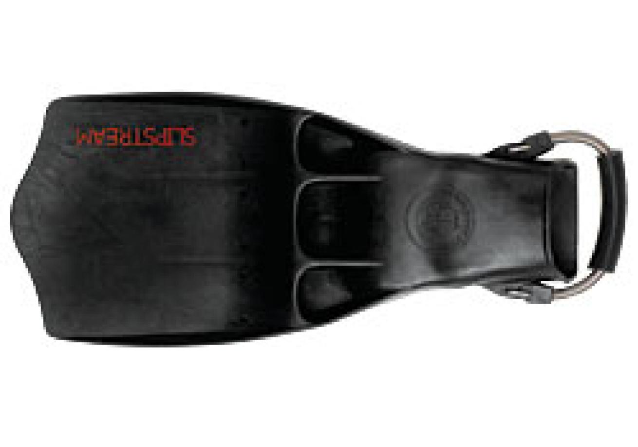 | | OMS Slipstream | This classic design has been updated with a distortion-resistant monoprene material that makes the fin surprisingly lightweight for its size. It only comes in one size--large/extra-large--so the fin's not for everybody, but dry suit divers wearing Rock Boots or thick booties will find plenty of room in the foot pocket. The few tests we were able to run on the Slipstream showed it to be relatively fast, able to generate some serious thrust and very stable. It's available with both a traditional strap or a nice coil spring strap with rubber heel guard. Price: $84