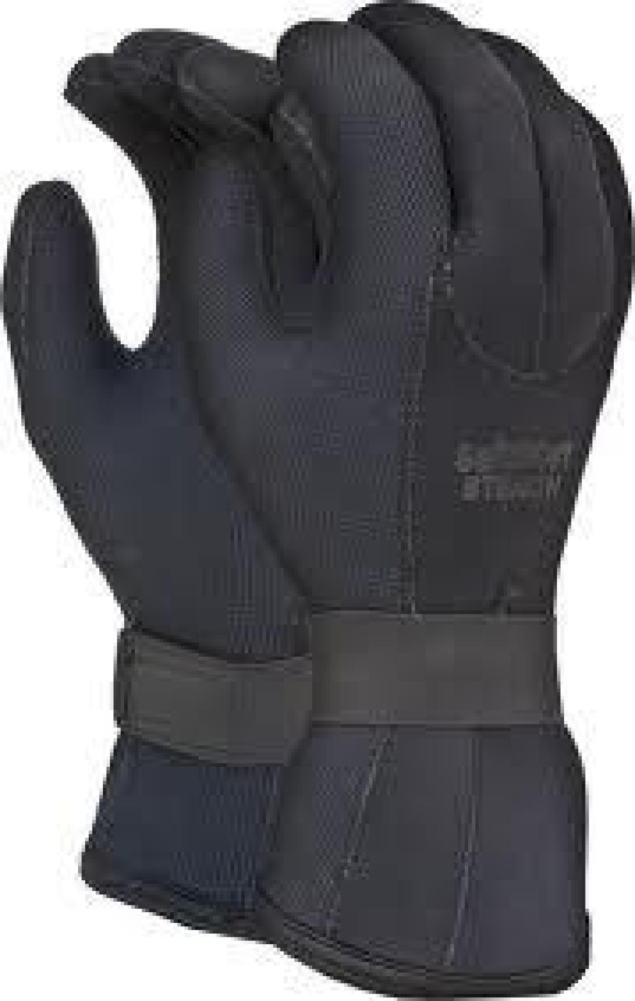 SEASOFT’s new-generation STEALTH glove is a combination of the latest technology advances in neoprene. The new SUPERSTRETCH™ neoprene keeps its shape, stretches to fit and resists the fracturing of the air cells, even after scores of dives. The STEALTH’s outer layer is a new type of high-stretch, super-abrasion resistant DINA-HIDE, for one of the toughest gloves available today. All seams are drysuit glued, blind-stitched and the two layers of Titanium Flake Foil provide added warmth. This, combined with the ultra-snug fit, allows very little water to enter the STEALTH, so your hands are warmer on longer dives. The glove’s gauntlet reaches well past the wrist, ensuring a good overlap with your suit, and is secured with a reinforced wrist strap. Ingenious baked-in rubber strips provide a solid grip when handling tools or dive lights. The Bottom Line: The construction and ultra-snug fit of these gloves ensure your hands will be warm and dry.