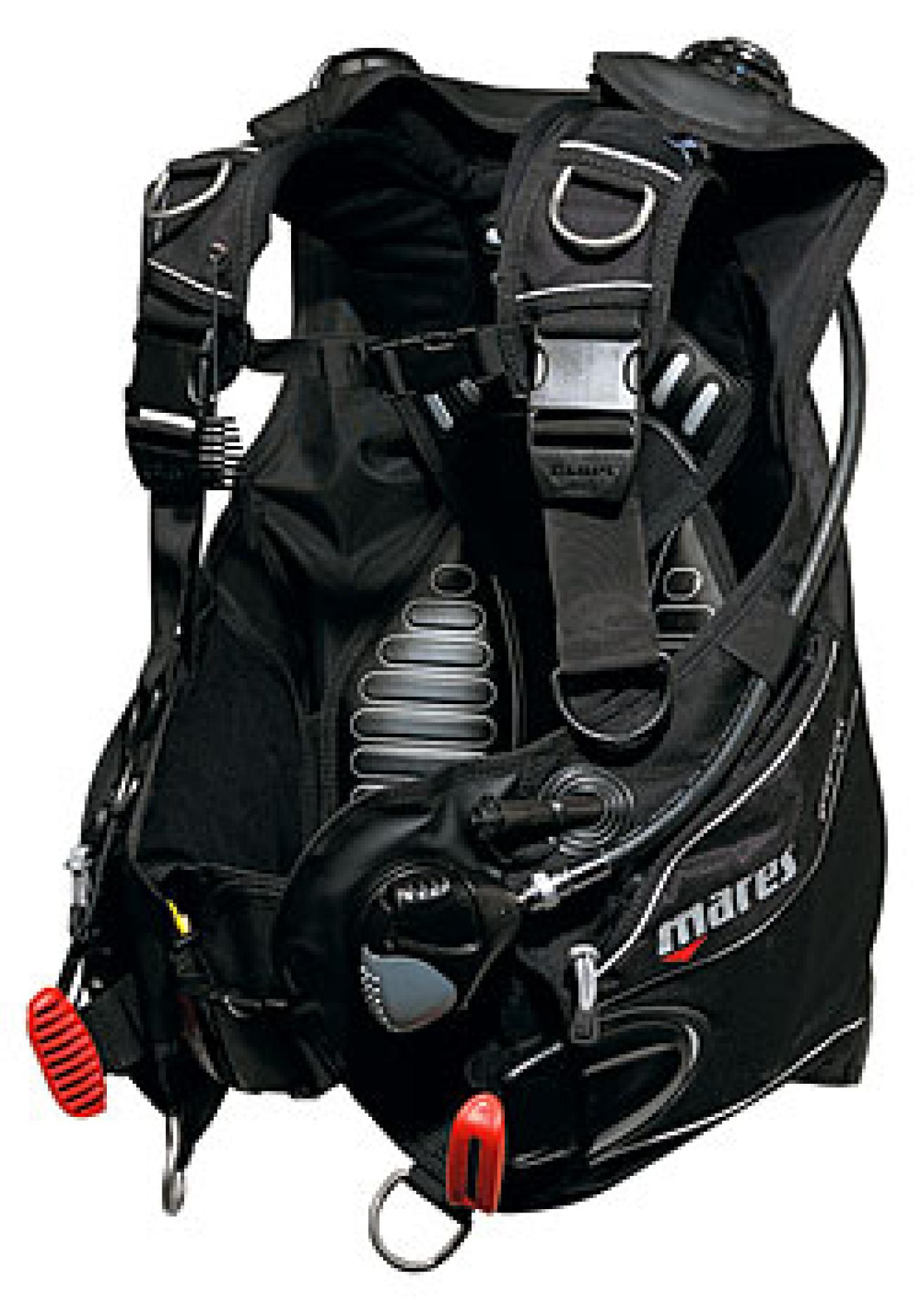 The design team at Mares was thinking outside the bubble with both the air cell and the inflate/deflate system. The combination puts buoyancy where you need it most and the controls within easy reach. The Air Trim module is positioned at the front of the air cell where it can be found every time, and the buttons are large and intuitive; the top button adds air and the bottom one dumps it. It uses air pressure from your tank to activate exhaust valves to vent air (as a backup, there is a manual pull dump on the right shoulder). Air flows quickly and predictably with the press of a button, and the exhaust valves vent air rapidly in feet- or head-first descents. The Dragon AT comes with the latest version of the MRS-Plus integrated-weight system, which test divers rated as Excellent for ditching ability. Zippered weight pockets lock with a positive-sounding "click," release handles are easy to find and the weights ditch smoothly with a quick pull of the handles. For comfort, Mares uses its neutrally buoyant BPS padding, plus a comfortable rolled neoprene collar. It all adds up to a cutting-edge BC that's "very comfortable on the surface and stable at depth." Price: $600.