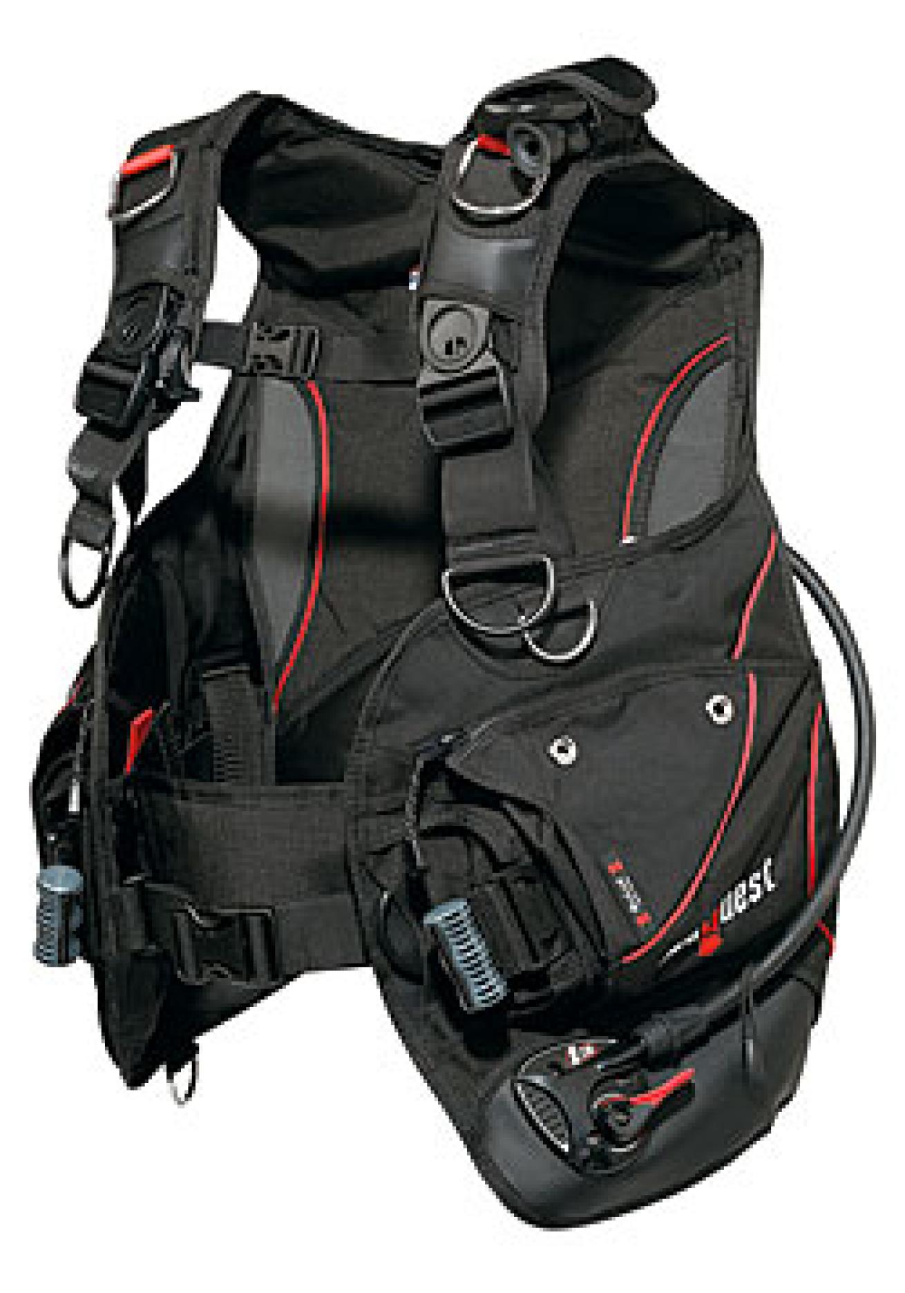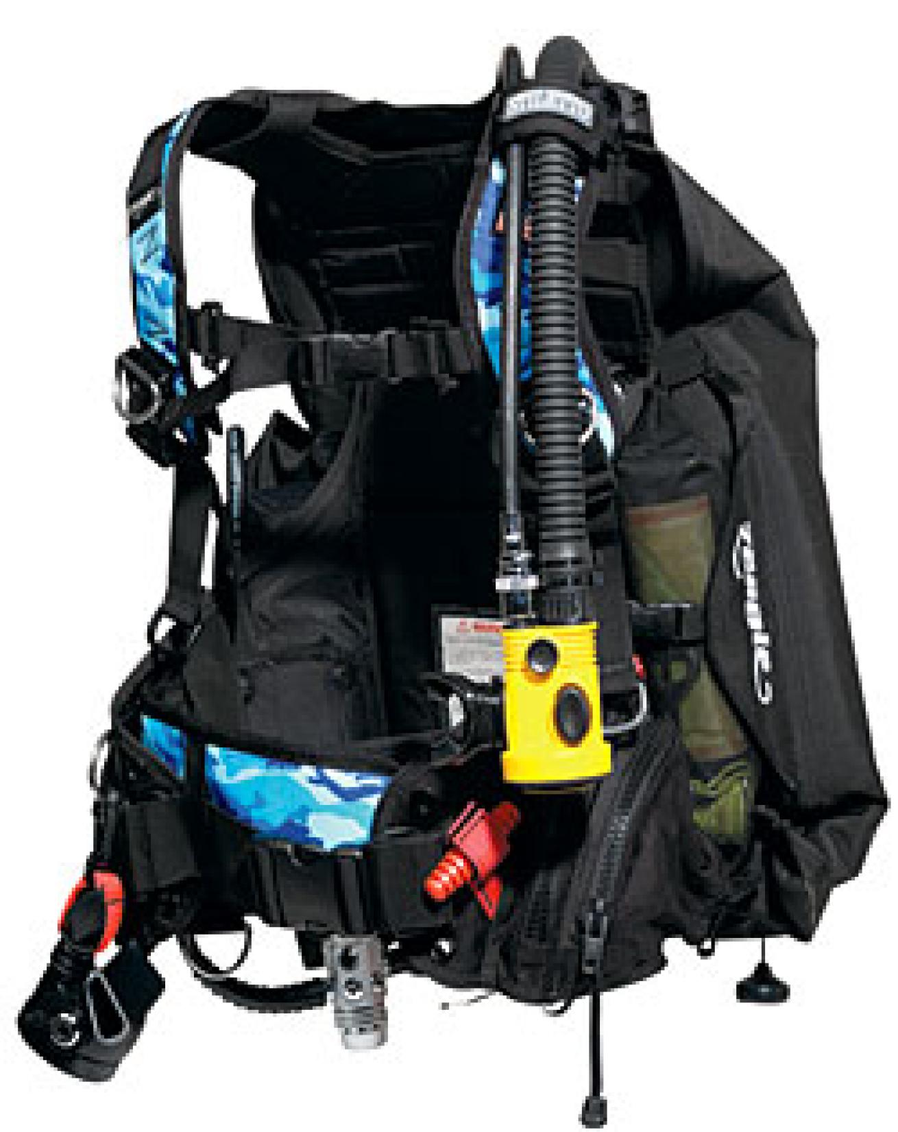 Though it looks and fits much like a jacket-style BC, the Atmos LX uses an effective hybrid air-cell design that places most of the air behind the diver as the bladder inflates (this allows for greater lift capacity while minimizing squeeze on the diver), but it leaves enough air around the waist to enhance stability on the surface. Test divers found it to be a comfortable, stable BC, giving it high marks across the board. In addition to the hybrid design, this BC also makes good use of the QLR integrated-weight system. The weight-pouch inserts have a stiff, pre-bent backing to keep a contoured shape and allow for easier loading. They are secured with a mechanical buckle and backed up by velcro, but all it takes is a quick tug on the handles for easy ditching. Test divers also gave this BC high marks for comfort and adjustability thanks to a great size range and features like a depth-compensating cummerbund, reinforced contour shoulders, a thick backpad and an adjustable chest strap. Price: $539.95.