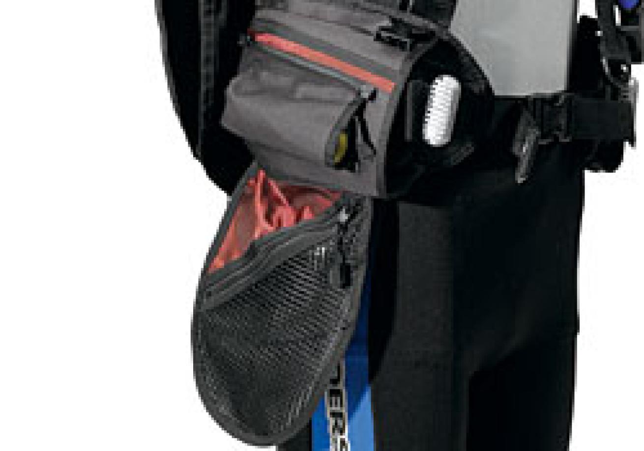 | Sherwood Scuba Axis (top) Drop-down zippered cargo pocket (above)|
