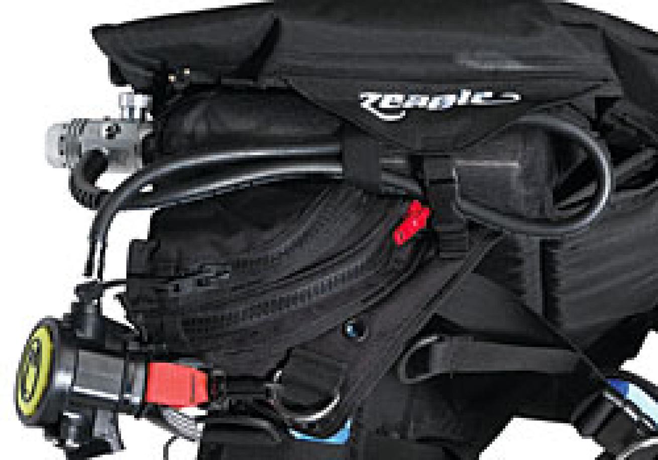 Zeagle took their popular Stiletto BC and tricked it out with an impressive array of standard features. The best part is they did it without adding any bulk or inherent buoyancy, no small accomplishment. Hidden in the folds between the air cell and harness are a quick-deploy pony bottle system, with a six-cubic-foot tank and independent first- and second-stage regulator, and a quick-deploy Deluxe Signal Tube System with a stainless-steel thumb reel. To top it off, they added the new Octo-Z alternate-inflator regulator. Test divers found the Stiletto provided "a great fit, stable ride and lots of mobility." The Stiletto is equipped with Zeagle's patented Ripcord weight-release system, which drops all primary weights with the pull of a single handle. The BC's two zippered utility pockets are small but offer good access. In spite of the heavy-duty materials and padding, this BC folds up pretty compactly for traveling. Price: $1,299.