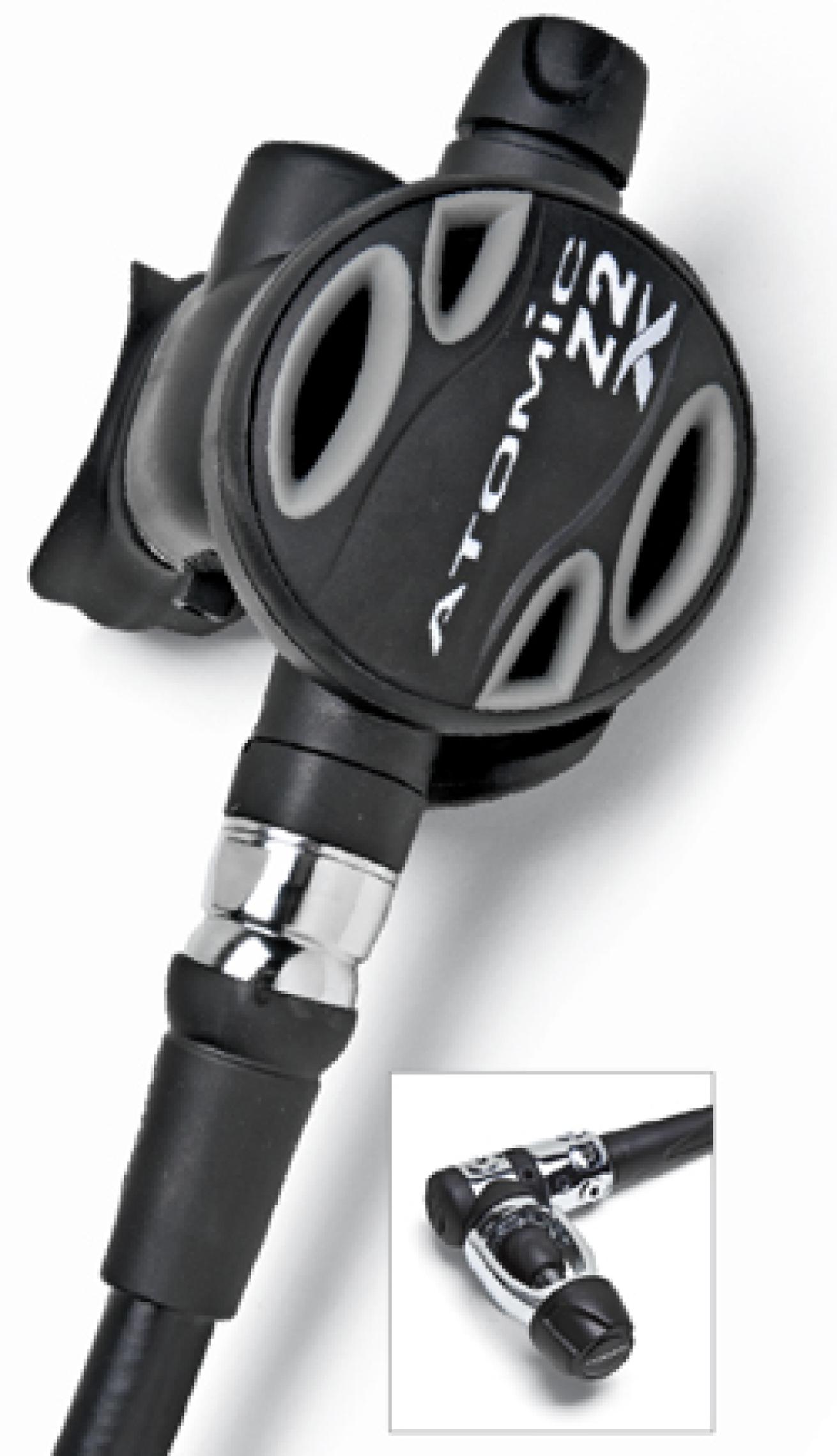 Atomic added its Comfort Swivel to the Z2 and renamed it the Z2x. Its balanced-piston first stage is available with a seven LP port design or a five LP port swivel turret. The second stage’s brass valve body is plated with palladium/zirconium for corrosion resistance, while the lever, orifice and second-stage spring are titanium. It comes standard with Automatic Flow Control and a seat-saving orifice. On the breathing machine, the Z2x kept up with the T2x at every RMV/depth level and then did the same in the ocean. Test divers found very little bubble interference and lots of comfort.