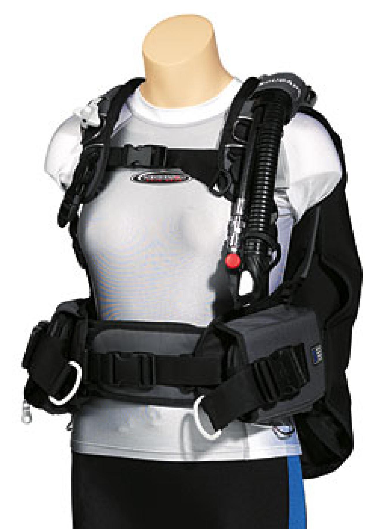 Performance Test divers loved how easy it was to put this rig together: The molded lift handle makes easy work of hoisting the BC onto a tank, and Scubapro's single-step Super Cinch tank band with stainless-steel buckle is the easiest tank-band system to adjust. Test divers also raved about how easy the large, contoured weight pouches packed, slipped into their sleeves and locked into place. However, they would have preferred smaller quick-release buckles, like those used on the Bella, to simplify ditching. In the water, the BC's comfortable fit contributed to its superb stability. The inflate/deflate buttons on the ergonomically shaped power inflator fit nicely into smaller hands, responded well to commands, and worked efficiently with the remote exhaust valves in maintaining precise ascent control. Another plus: The Ladyhawk carries virtually no inherent buoyancy.