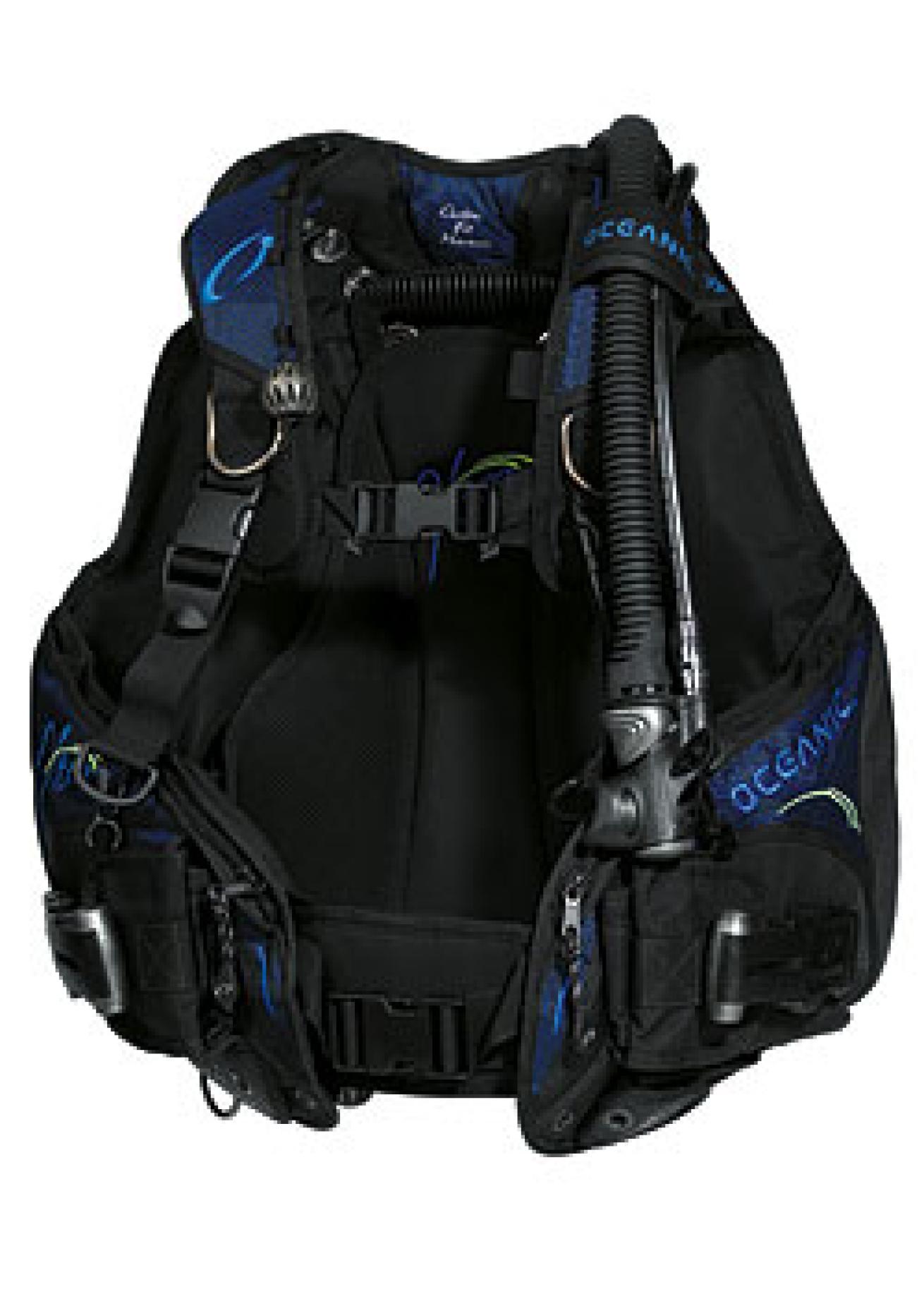 Features The Contour and Hera are twin sisters that share some sweet DNA. Designed for women from the ground up, they are built around a hybrid air cell and a patented Custom Fit Harness that lets you vary the shoulder strap length to match a woman's torso. A two-position sternum strap and adjustable depth-compensating cummerbund cinches the BC down snug, fine-tuning the fit. The bottom edge of the air cell is cut with slight indents, and the back padding is thick and extends around the front to cushion the torso from the weight pouches. Each BC is equipped with the QLR (Quick Lock Release) integrated-weight system that uses mechanical latches backed up by Velcro for added security. The weight sleeves are angled slightly--the opening is slightly higher than the back--making the pouches easy to load. Both BCs come with a low-profile power inflator, six stainless-steel D-rings, a pair of zippered pockets and mounting grommets for a knife and retractor. The only difference between the Contour and the Hera is the stylish embroidery and nylon that Oceanic uses.