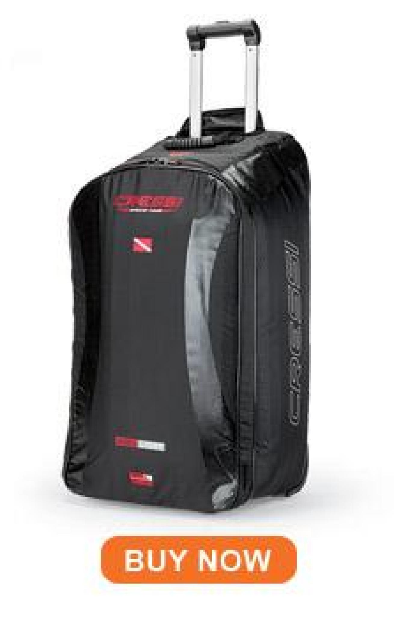 A robust roller/duffel hybrid with a relatively narrow profile and an ample helping of reinforcement; this bag can go right from the luggage cart to the dive boat, making it a good choice for divers who do both local excursions and airline travel. What We Liked: Top-quality materials and construction; padding and internal stays create rigidity to ease packing; primary zipper has loop fittings for TSA locks.What We Didn’t: Narrower-set wheel decrease towing stability; 10-pound bag weight; side-fin pockets are unnecessary.