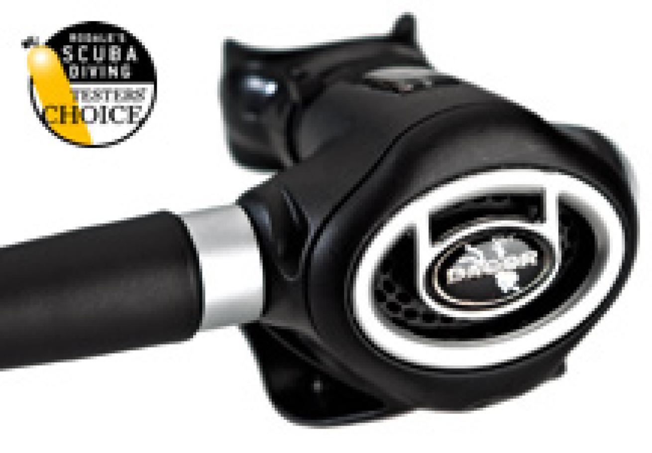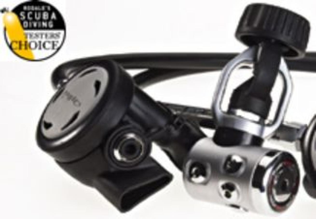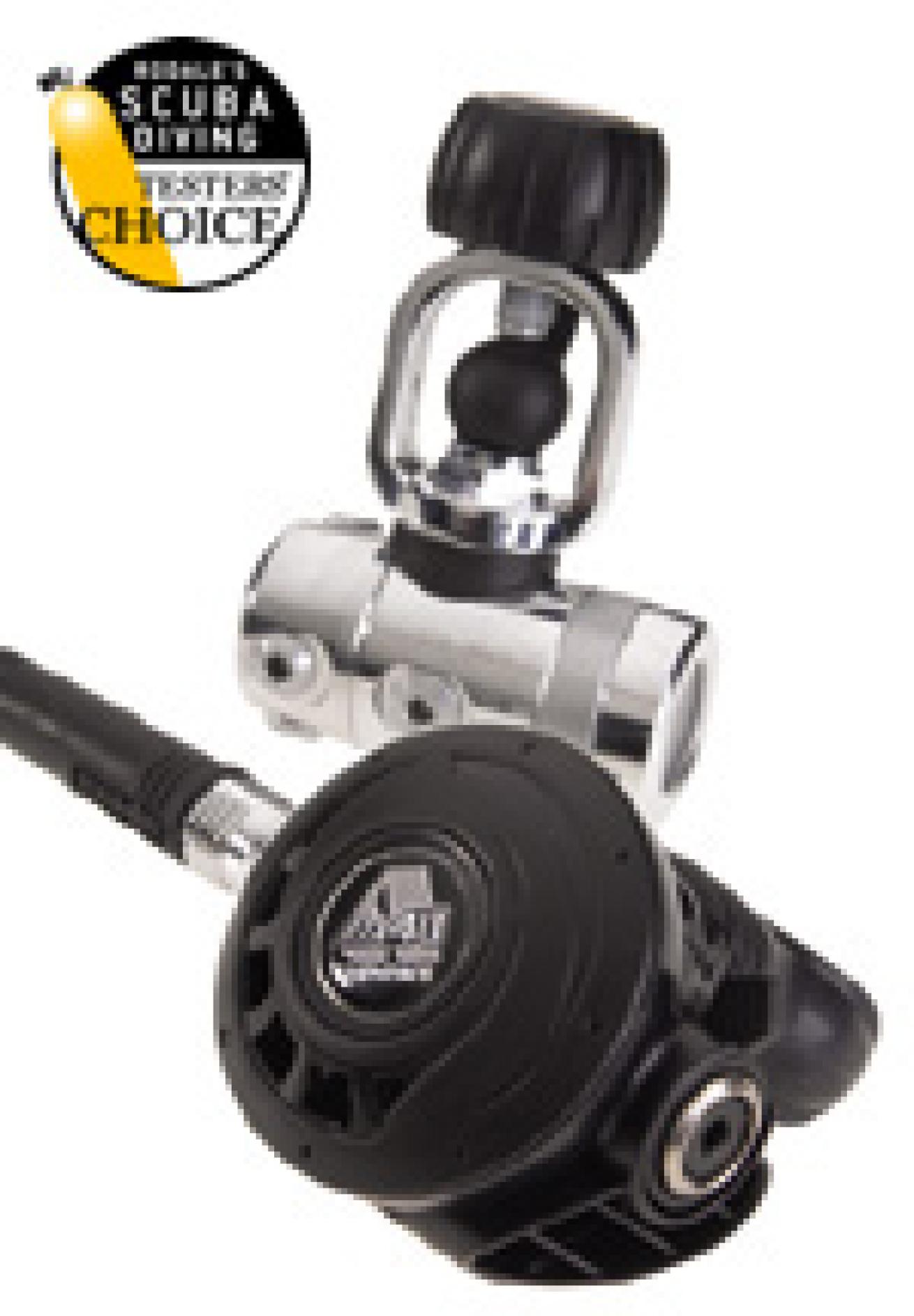 This is a strong performer on the simulator and in the water, and is a good breather in all positions. It has a compact, environmentally sealed first stage and dry, comfortable second stage that clears easily using either the purge button or blowing method. The adjustment knob is easy to use, and the dive/predive lever is efficient though not clearly marked. It comes with one of the best warranties in its class.