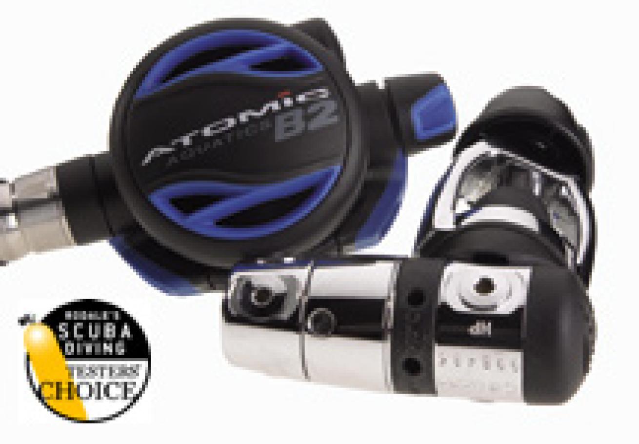 The B2's balanced piston first stage has a low-pressure port swivel to simplify hose routing. The second stage is built with titanium components and features Atomic's "Comfort Swivel," the best of a new generation of second-stage swivels, providing 30 degrees of motion between second stage and low-pressure hose. The B2's dual silicone mouthpiece, introduced last year, is still a favorite among testers.