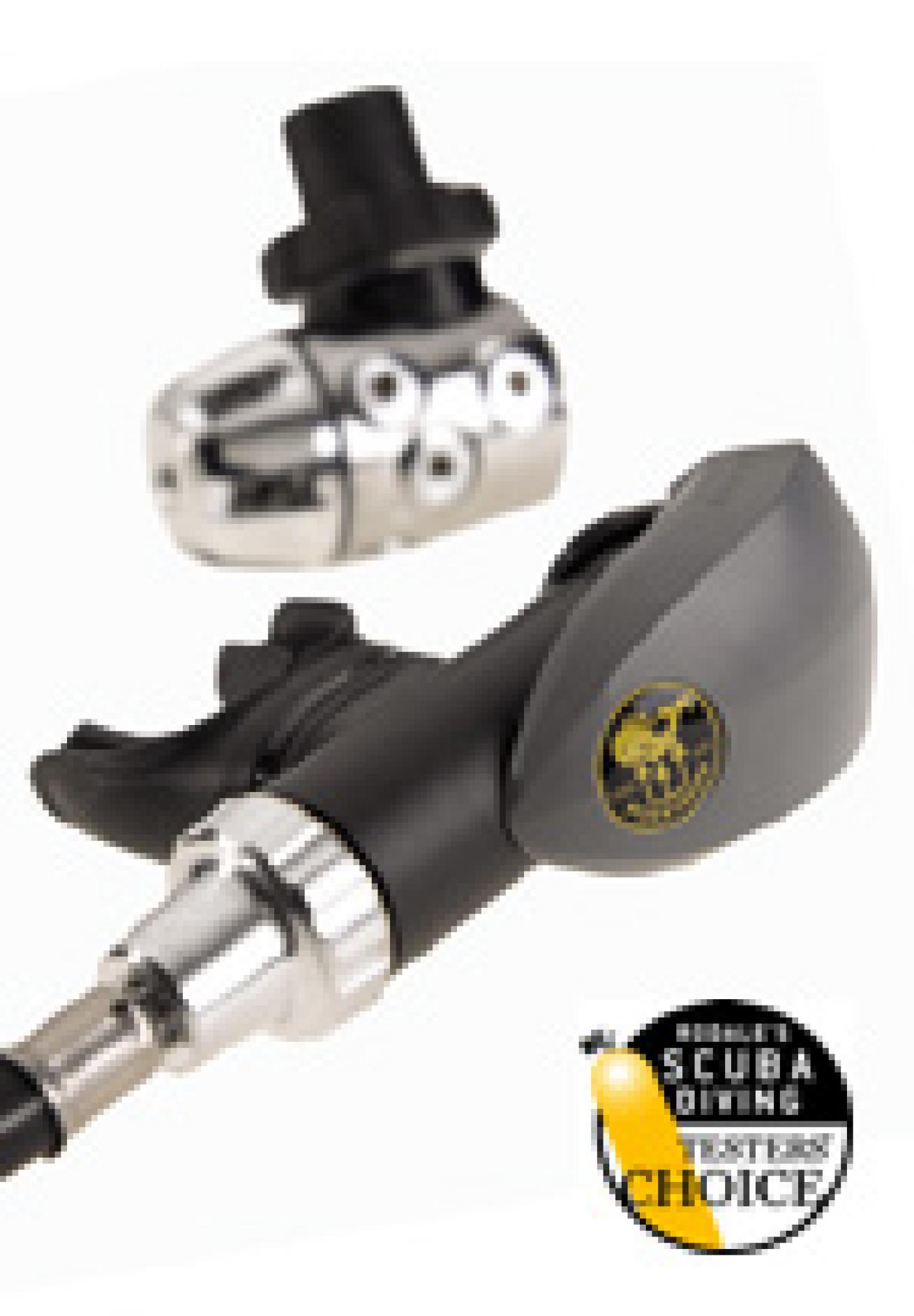 This is a solid, midpriced regulator that delivers good to excellent work of breathing on the simulator and respectable performance in the water. The second stage is a nice size and features an efficient purge. The small dive/predive switch is hard to grasp, but well-marked. The first stage has a primary low-pressure swivel that simplifies hose routing. However, the hose protector inhibits the swivel's range of motion.