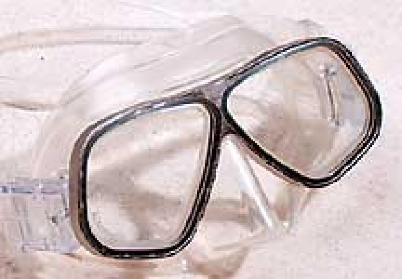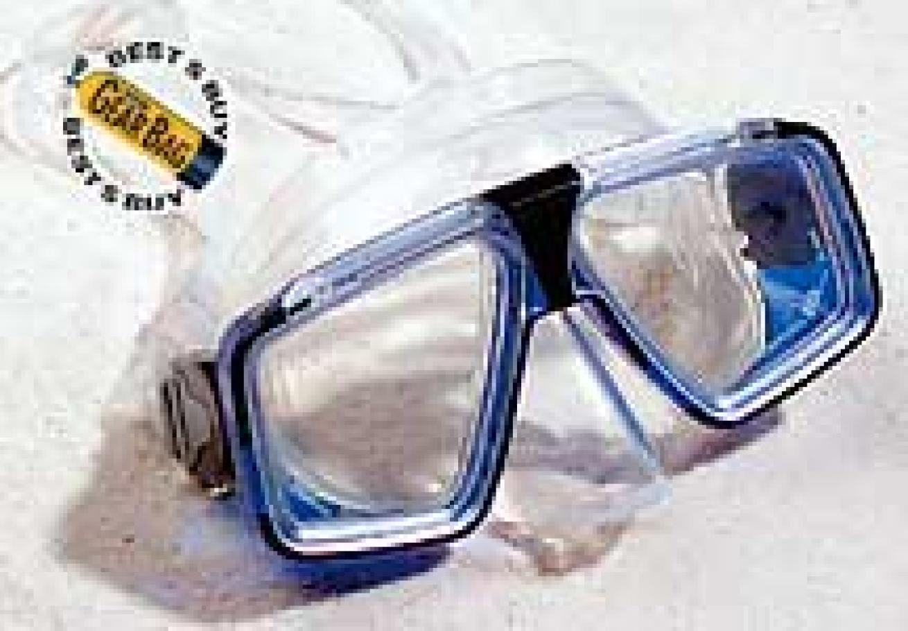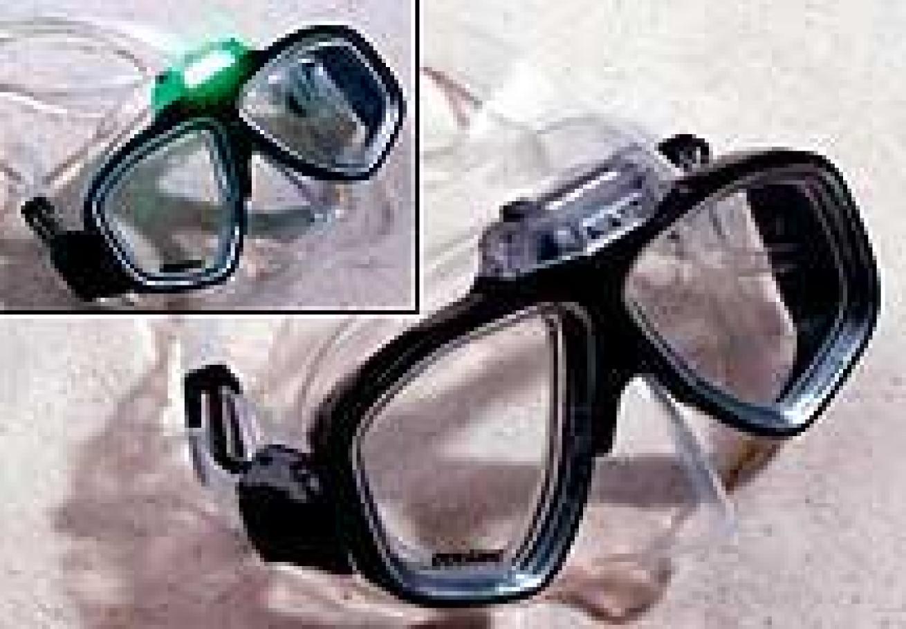 Comment: Best downward view of any mask tested this year, thanks to lenses with exaggerated points at the bottom. Corrective lenses are available in this unusual shape. Excellent view to sides, fairly low volume, though upward view suffers. Retested, as last year's results were erroneous. Tester's Choice.