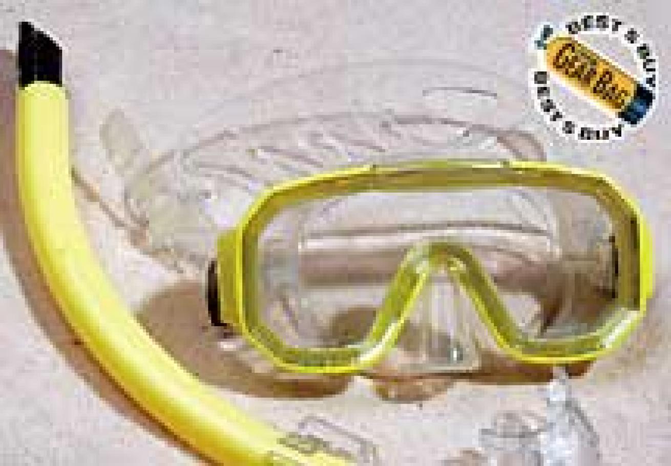 Comment: Single-window style. Marketed for kids, this mask comes packaged with a matching snorkel. Best Buy.