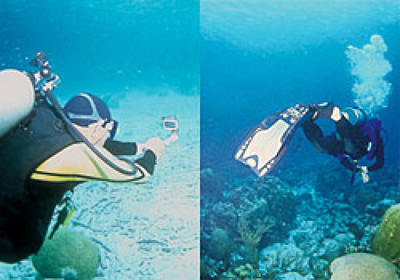 See more photos of the fin testers at work and at play in an exclusive behind-the-scenes report from Fin Test '04. Visit www.scubadiving.com/200410_scubalab_fintestbts.