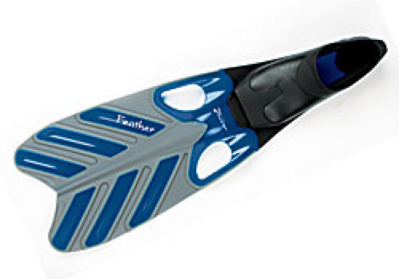 Tilos Feather Weighing in at just under a pound, this modified paddle design is the lightest fin in this year's round-up. While probably better-suited to snorkeling, the Feather delivered decent performance on the speed course. It also earned a higher rating for fit and comfort than any of its competitors. The foot pocket is very soft--good for comfort, but bad for efficient energy transfer. Plus, the overly flexible blade had a tendency to fold up in tight turns. But for a suggested retail price of only $37, this isn't a bad fin.