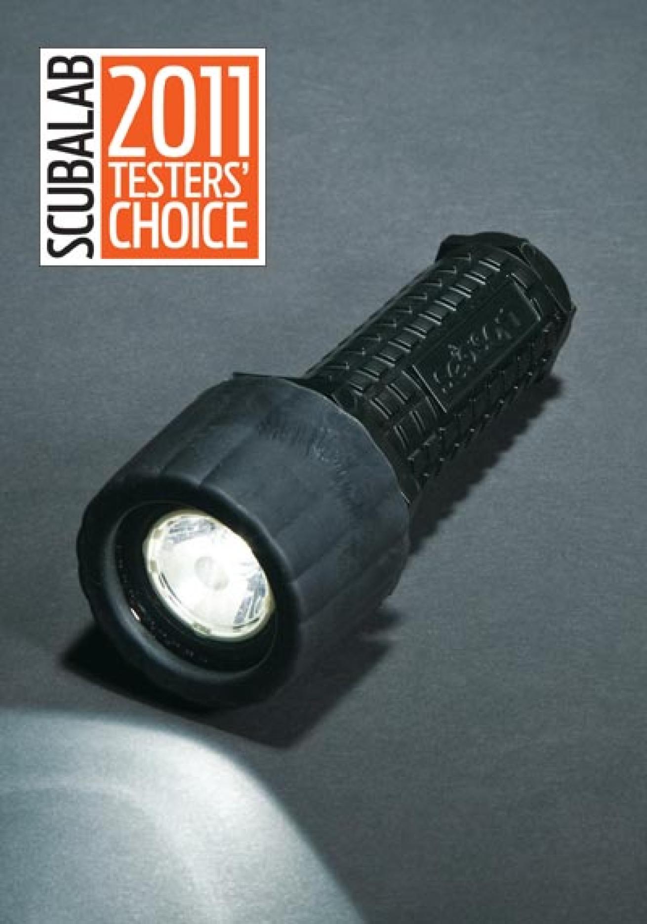 Weighing only 6.5 ounces even with its two 3-volt lithium batteries, this is one featherweight dive light. it’s compact too, especially for a light that packs so much punch. The RayGun delivers one of the brightest spots in its category, plus its beam, measuring 18 inches in diameter, is by far the largest in both the Pocket Light and Compact Primary Light categories. As if that weren’t enough, the halo that surrounds the beam reaches out almost two feet from the center, creating a torch compact enough to be used as a backup but as powerful as a primary. The light’s polycarbonate body is textured for easy gripping, and it uses a double O-ring sealing system and twist on/off light switch. A wrist lanyard can be attached to the eye at the end of the body.