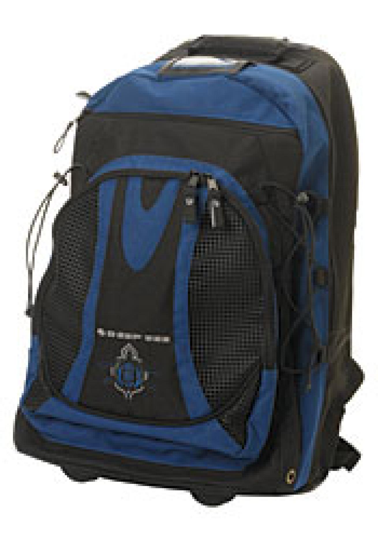 The Excursion is a clever rolling backpack useful for both air travel and as a boat bag. The well-ventilated front pouch is perfect for stashing your stinky sandals or soggy swimsuit and the middle compartment has an expanding fin pouch large enough to accommodate a standard set of full-foots. For use as an airline carry-on, we tucked the contoured shoulder straps in their zippered sleeve, then folded the fin pocket inside the middle compartment to make a home for our reading material. We stashed our passport and tickets inside a zippered sleeve on back of the bag for easy access, and everything else fit nicely in the main compartment. If you carry a separate bag, the Excursion will accommodate an entire set of warm-water dive gear.