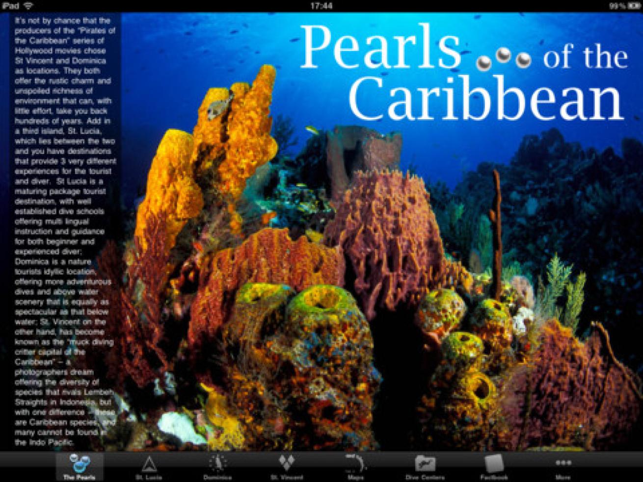 Description: Pearls of the Caribbean HD (and non HD) is a diving and travel companion guide to St. Lucia, Dominica, and St. Vincent. It provides information on dive centers, dive sites, weather conditions, and location information.