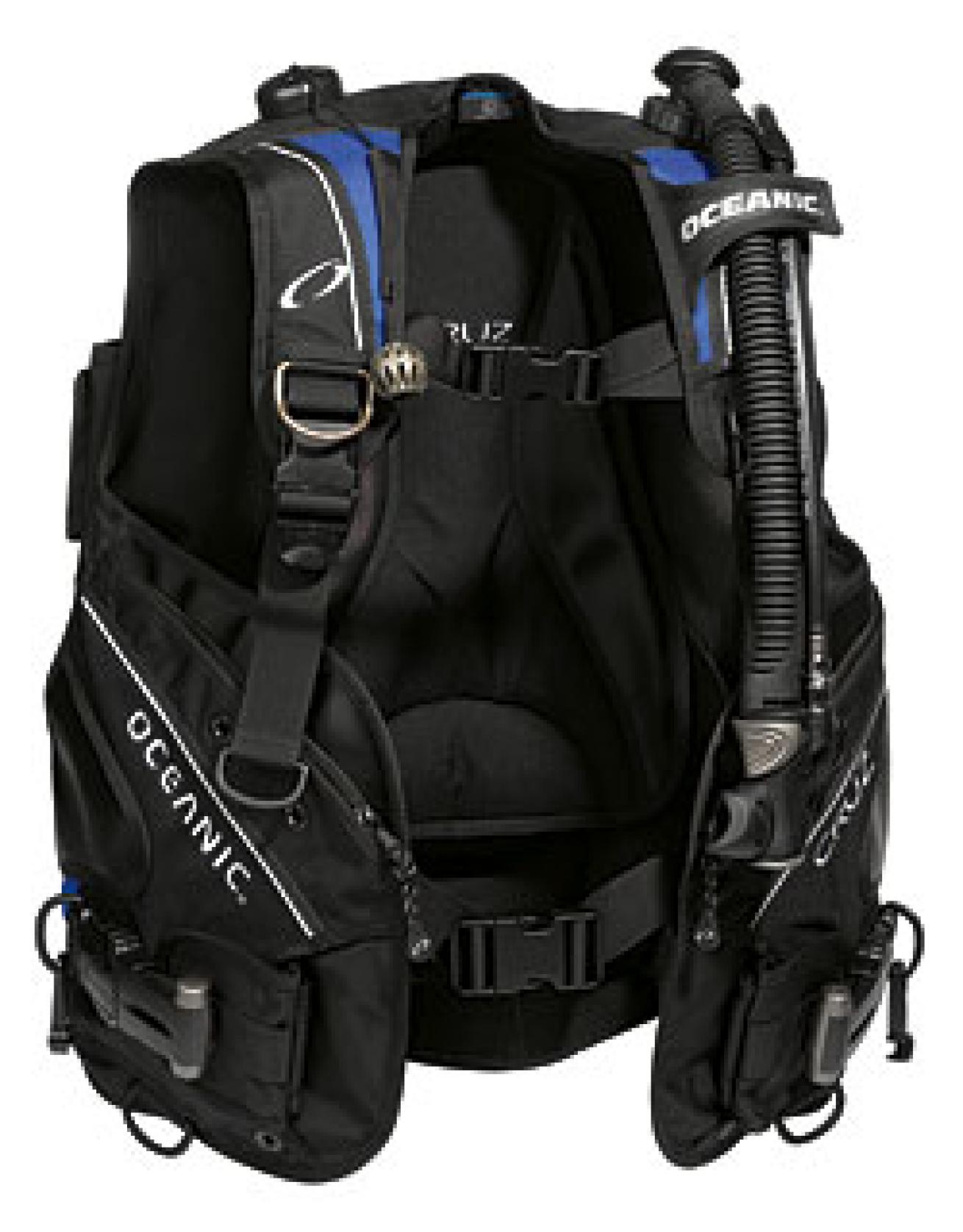 The Cruz is a simple yet functional jacket-style BC that will get-'er-done whether you're getting wet in the local quarry or exploring a remote tropical reef. It's lightweight (our test BC, size large, weighed only 7 pounds, 11 ounces--not much more than many purpose-built travel BCs), yet it offers a lot of buoyant lift, 27 to 48 pounds depending on size. The QLR weight system will hold up to 20 pounds (plus 10 pounds in nonditchable rear pouches), but the ditchable pouches can also be shortened to hold a partial load for tropical conditions. The BC's zippered storage pockets are huge and easy to get to, and their volume isn't affected by the weight ditch system. In the water the Cruz is a comfortable BC. The lumbar pad is cozy, the high-cut bladder tucks up securely under the arms and an adjustable strap system lets you achieve a really snug fit. The hard backpack minimizes tank wobble and contributes to a controlled, stable ride. The weight system is well positioned, easy to load and easy to ditch. In addition to an efficient power inflator with pull dump, the BC also comes with two remote exhaust valves, all of which work together to make ascent control a cinch.