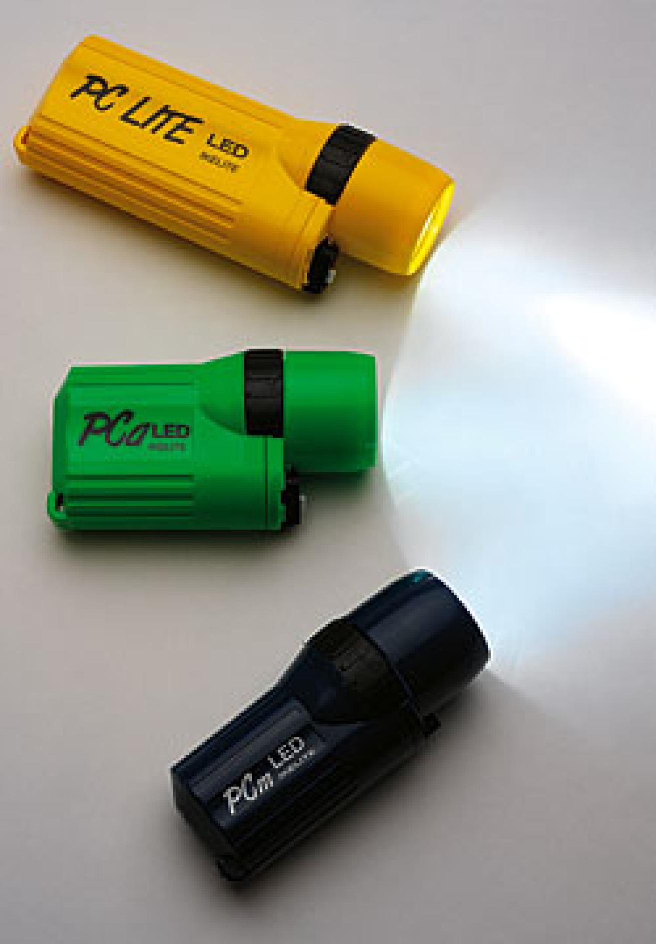 The PC LED is the largest member of Ikelite's new PC LED series of dive lights, but it's still a pretty compact torch. Measuring 6 inches long by about 2.5 inches at its widest point, the light will stow in virtually any BC pocket yet generates a smooth but intense, bright-white beam measuring 6.7 EV at the center. The light provides about 10 hours of continuous burn time on four C-cell batteries, and the case is rated for depths up to 300 feet. The on-off lever has a very secure switch lock to avoid accidental turn-ons. There's also a lock to make sure the battery compartment doesn't open accidentally--a nice touch. The other two members of the PC LED Series--the PCa and PCm--deliver similar powerful beams, but with shorter burn times and in smaller packages.