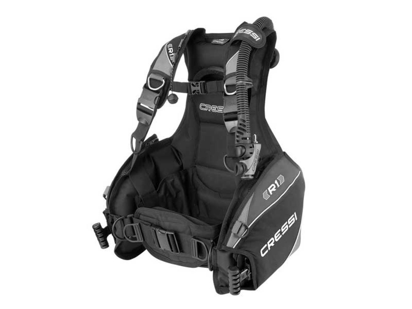 Cressi’s R1 jacket-style BC is comfortable and easy to use. It features padding in the back and lumbar areas as well as underneath the shoulders, and the air cell slides on the cummerbund, eliminating body squeeze. The rigid backpack delivers a stable ride, and the Lock Aid integrated weight system loads and ditches easily. Available in five sizes with buoyant lift up to 36 pounds